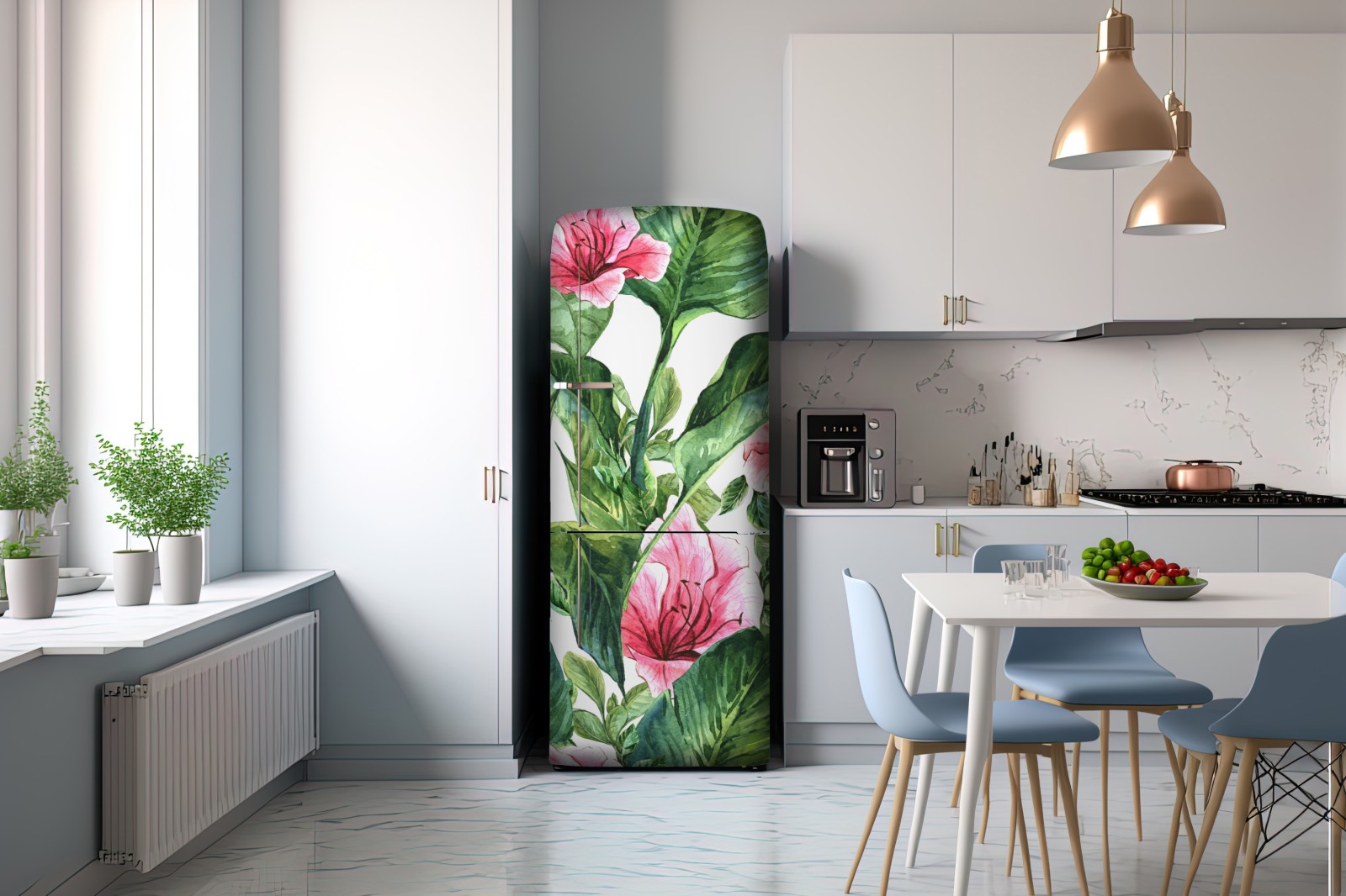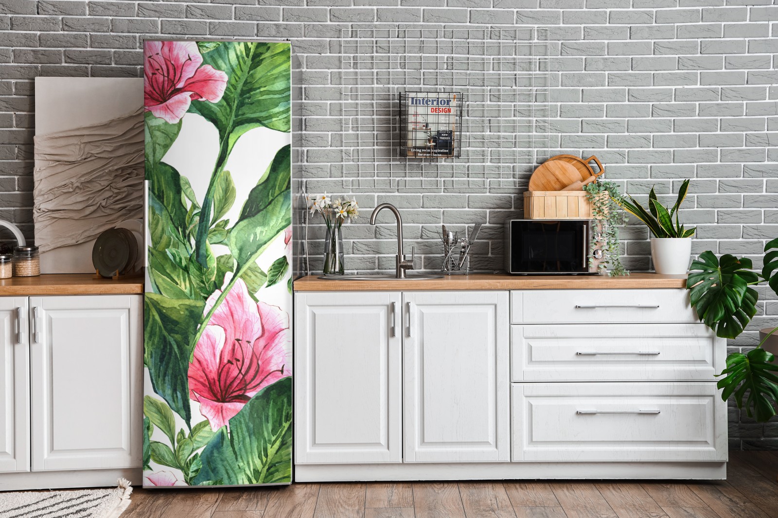 Kühlschrankaufkleber rosa aquarell blumen botanikmotiv