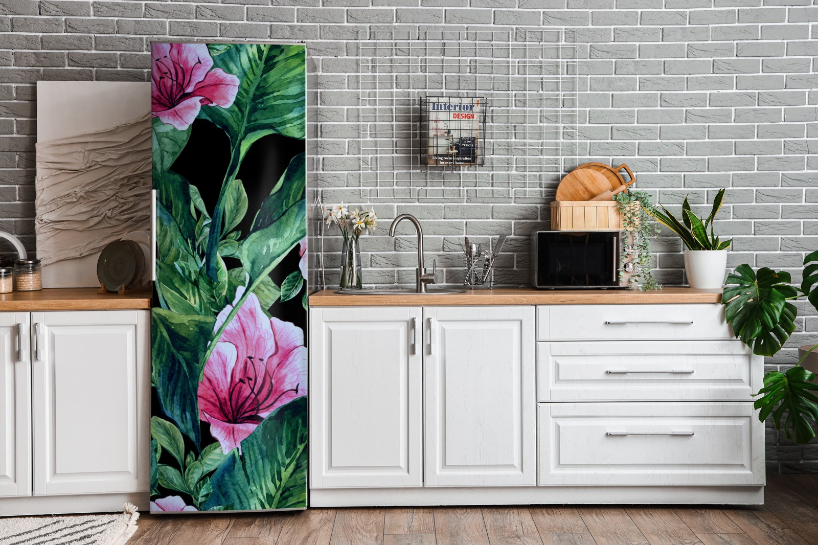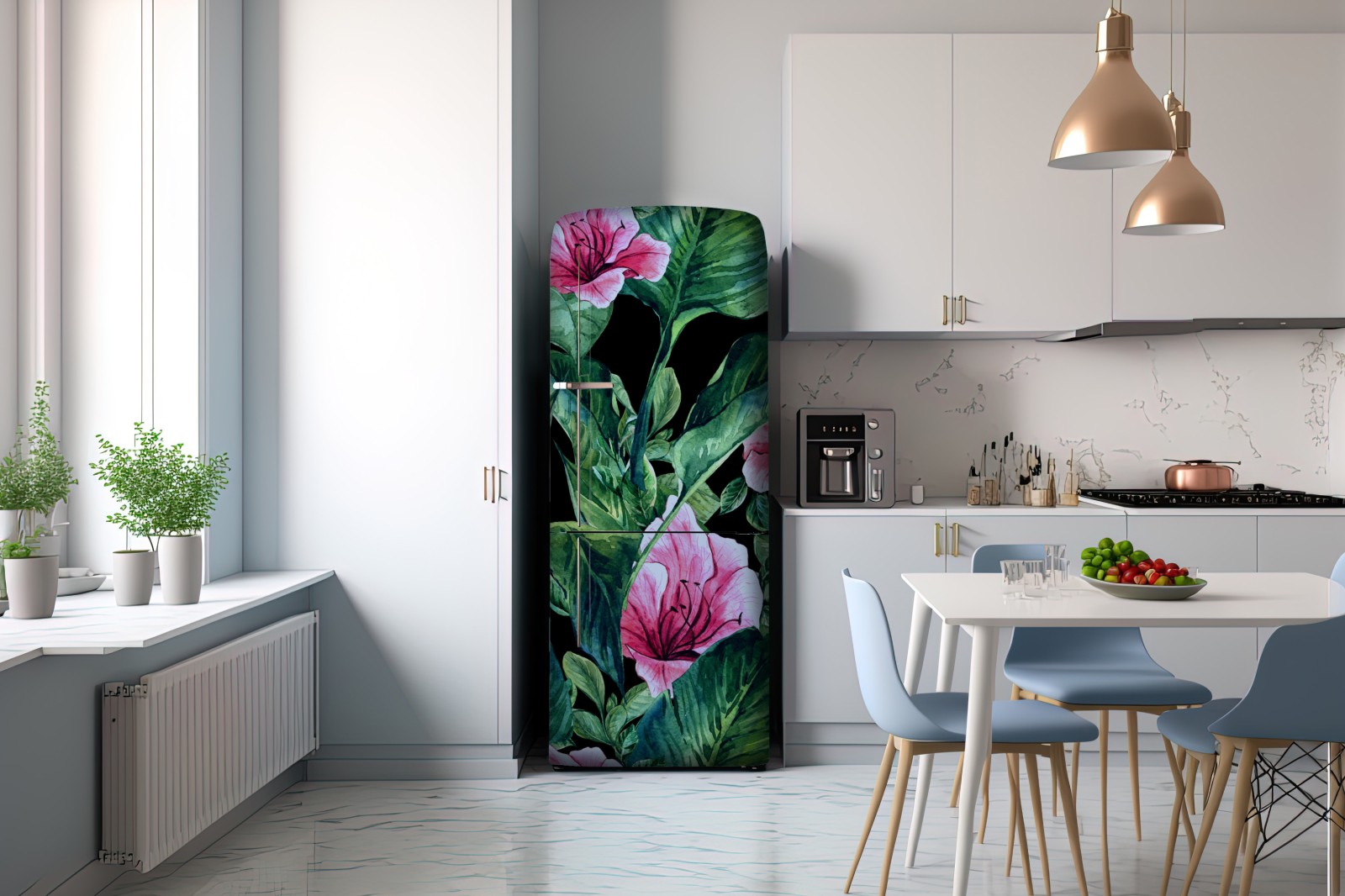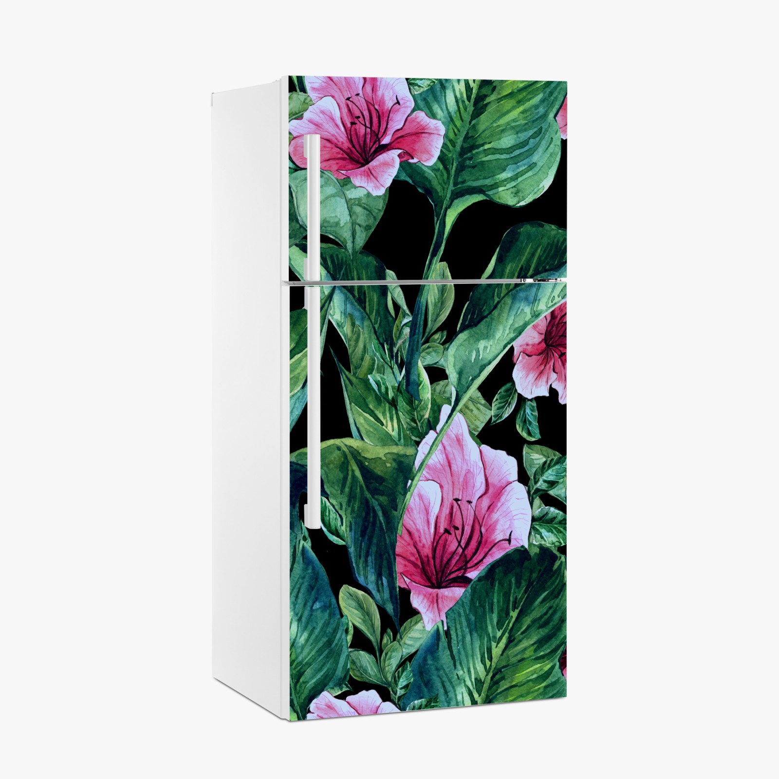 Kühlschrankaufkleber rosa aquarellblumen auf schwarzem hintergrund