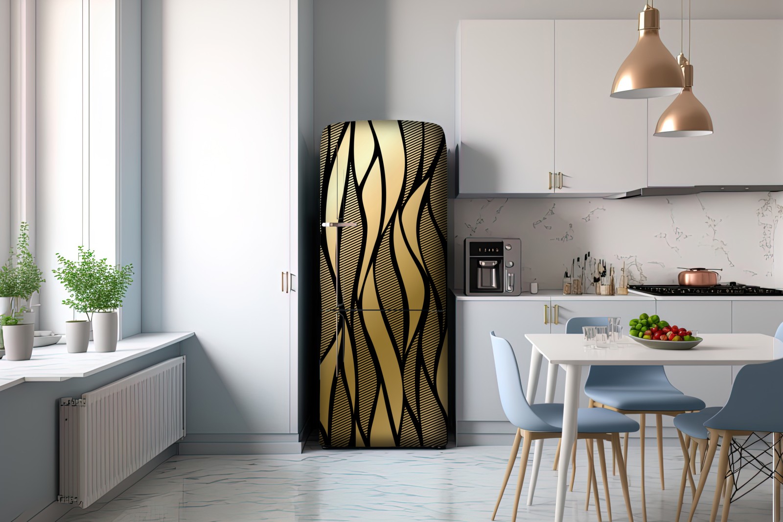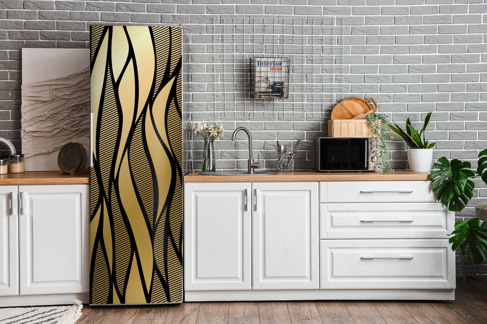 Kühlschrankaufkleber luxuriöses goldenes abstraktes wellenmuster