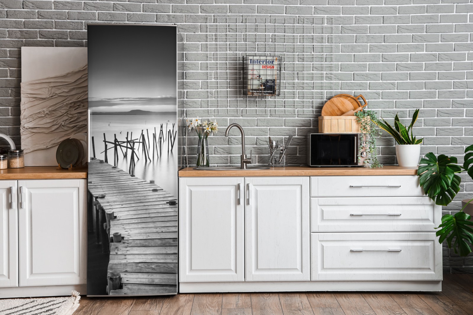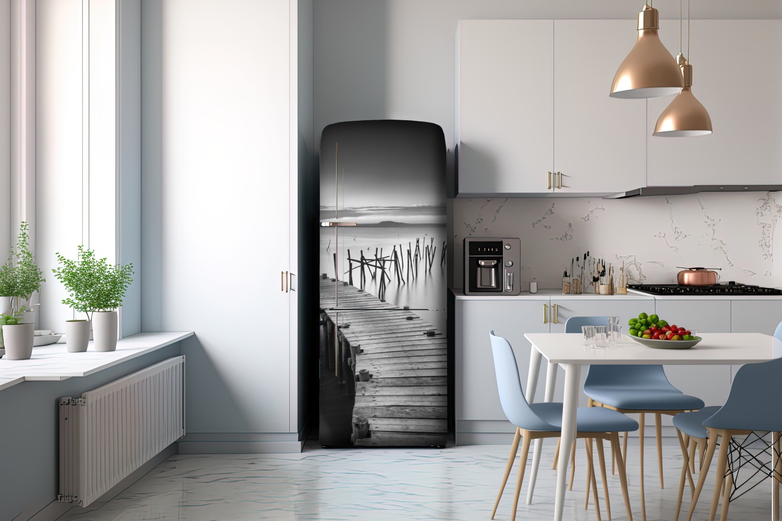 Kühlschrankaufkleber ruhiger hölzerner steg bei dämmerung