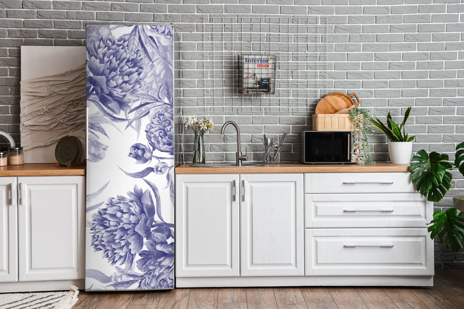 Kühlschrankaufkleber blaue pfingstrosen botanisches muster
