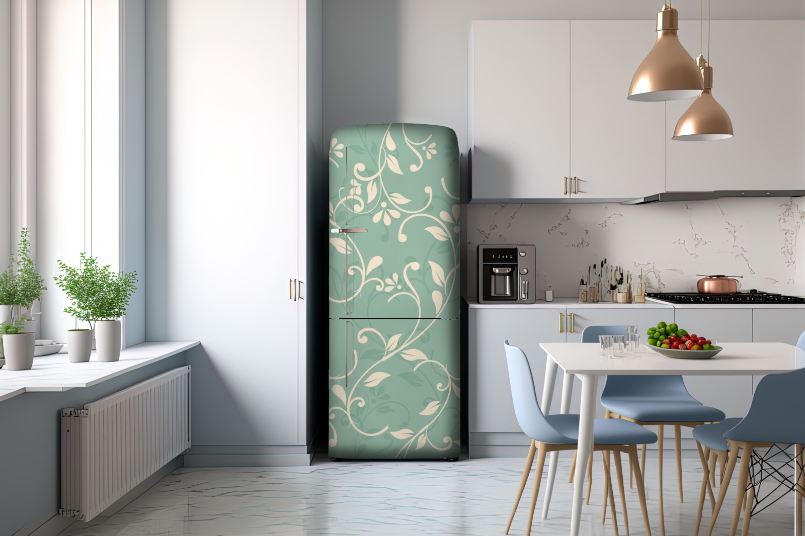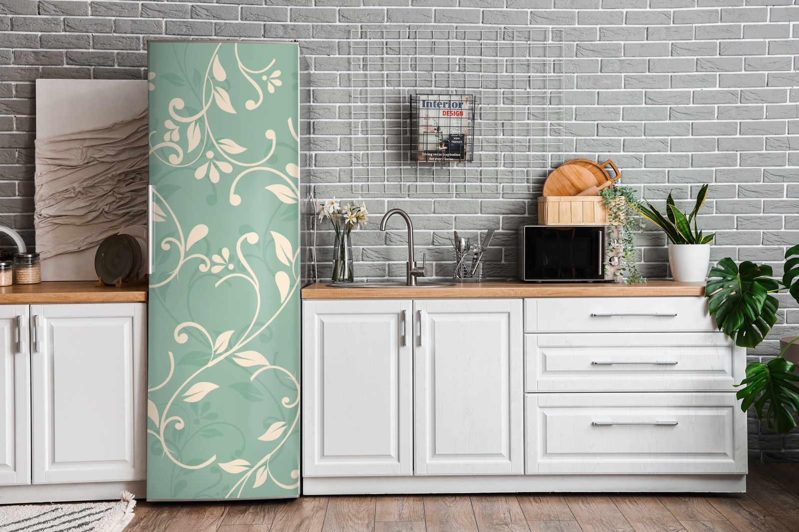 Kühlschrankaufkleber minzfarbiges blumenmuster im vintage-stil