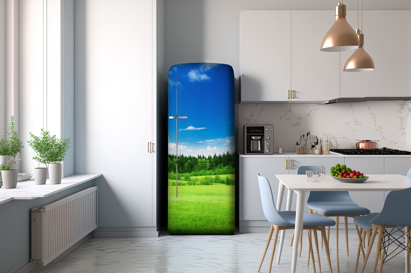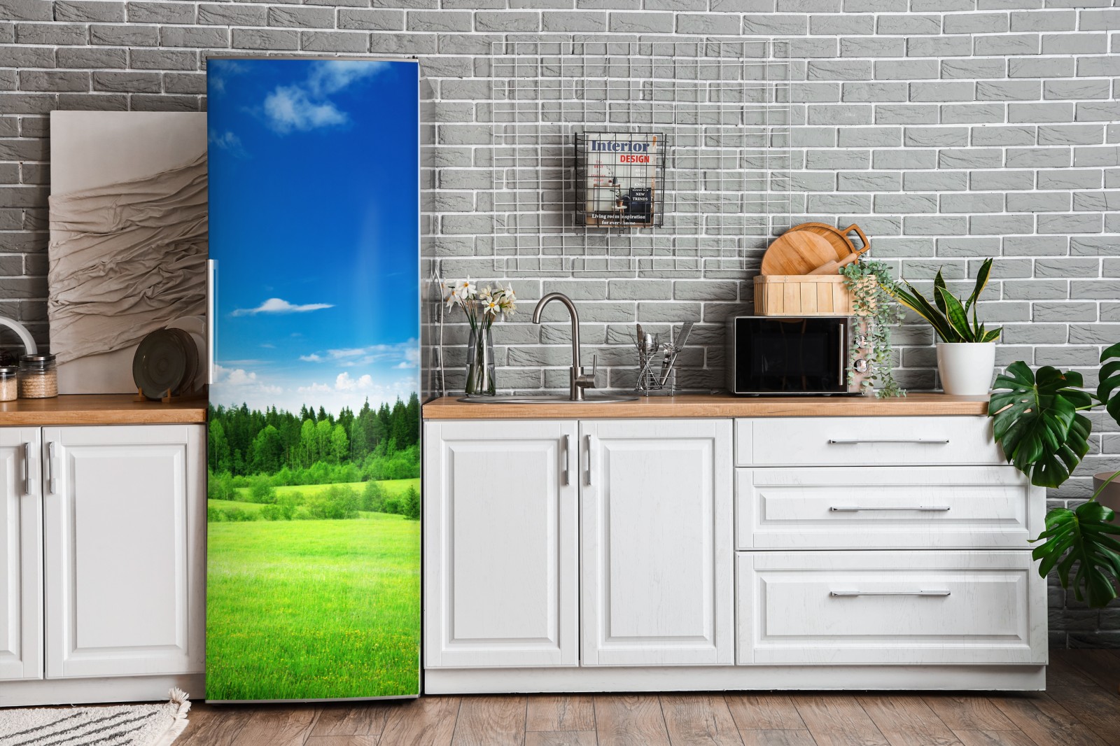 Kühlschrankaufkleber frühlingswiese unter blauem himmel