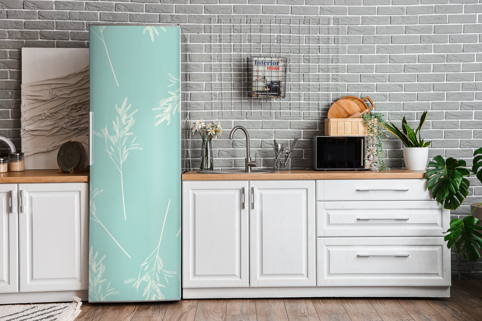 Kühlschrankaufkleber zartes türkisfarbenes botanisches muster