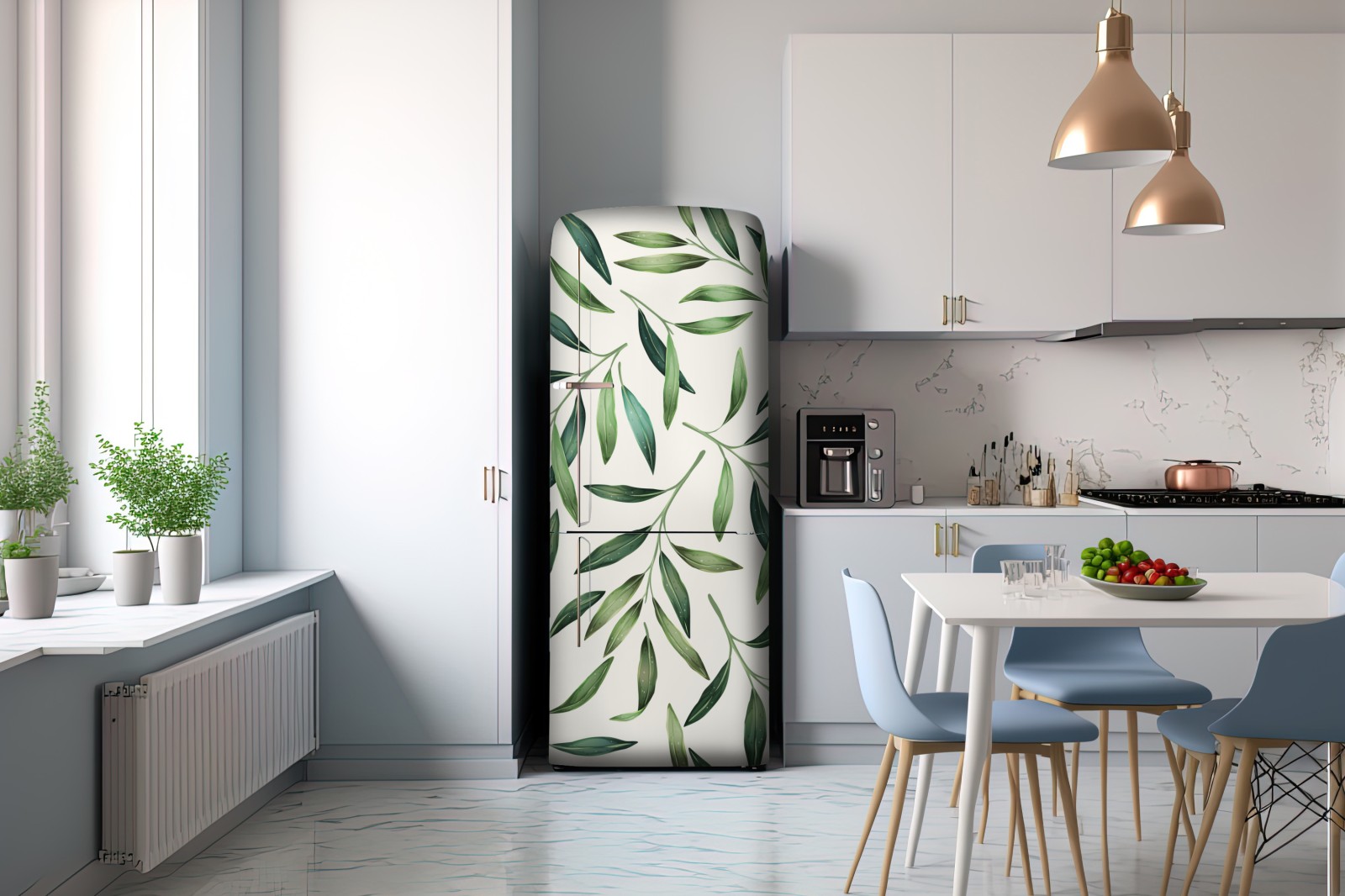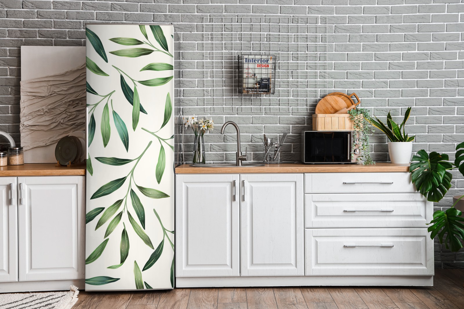 Kühlschrankaufkleber grünes aquarell blättermuster