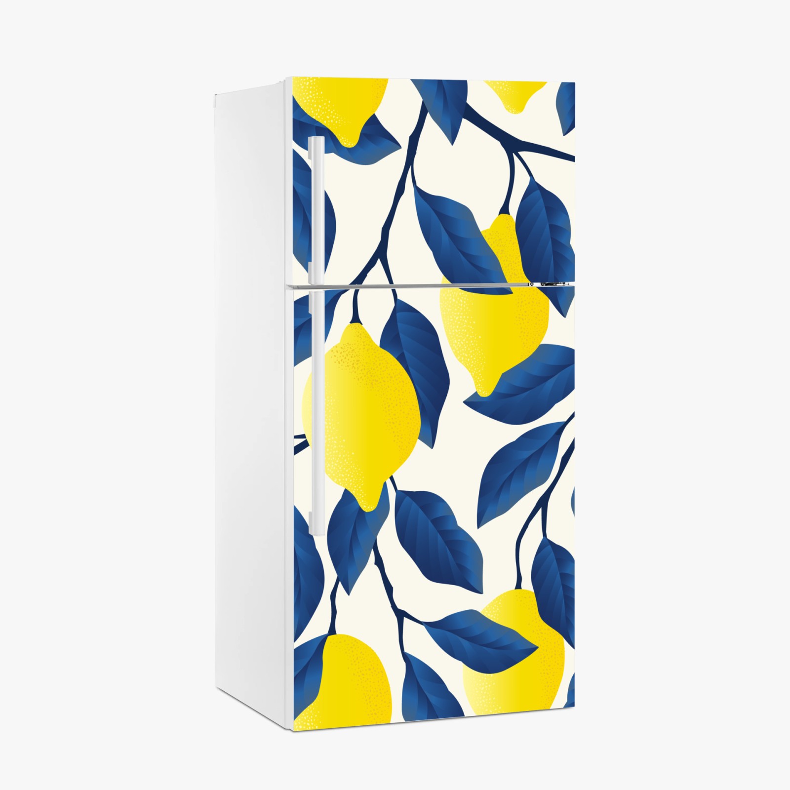 Kühlschrankaufkleber Lebhaftes zitronenmuster mit blauen blättern