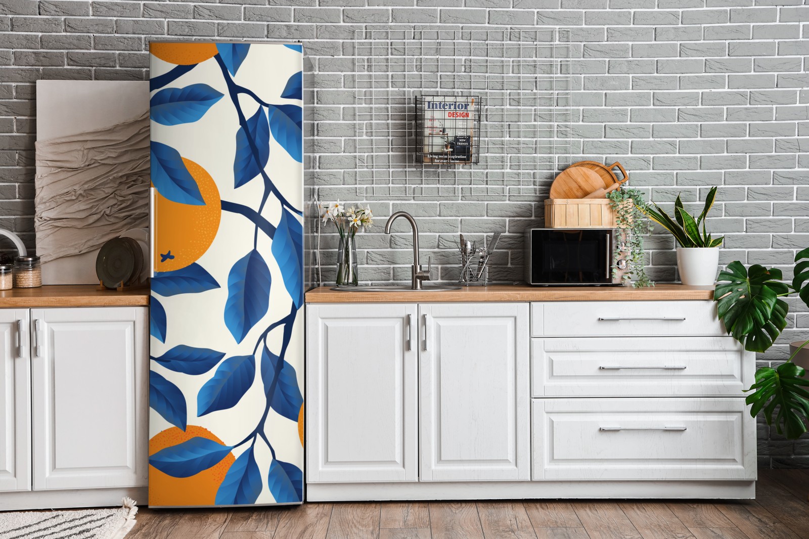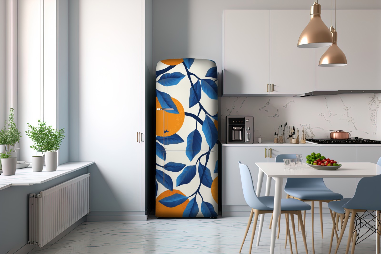 Kühlschrankaufkleber kräftiges zitrusmuster in orange und blau