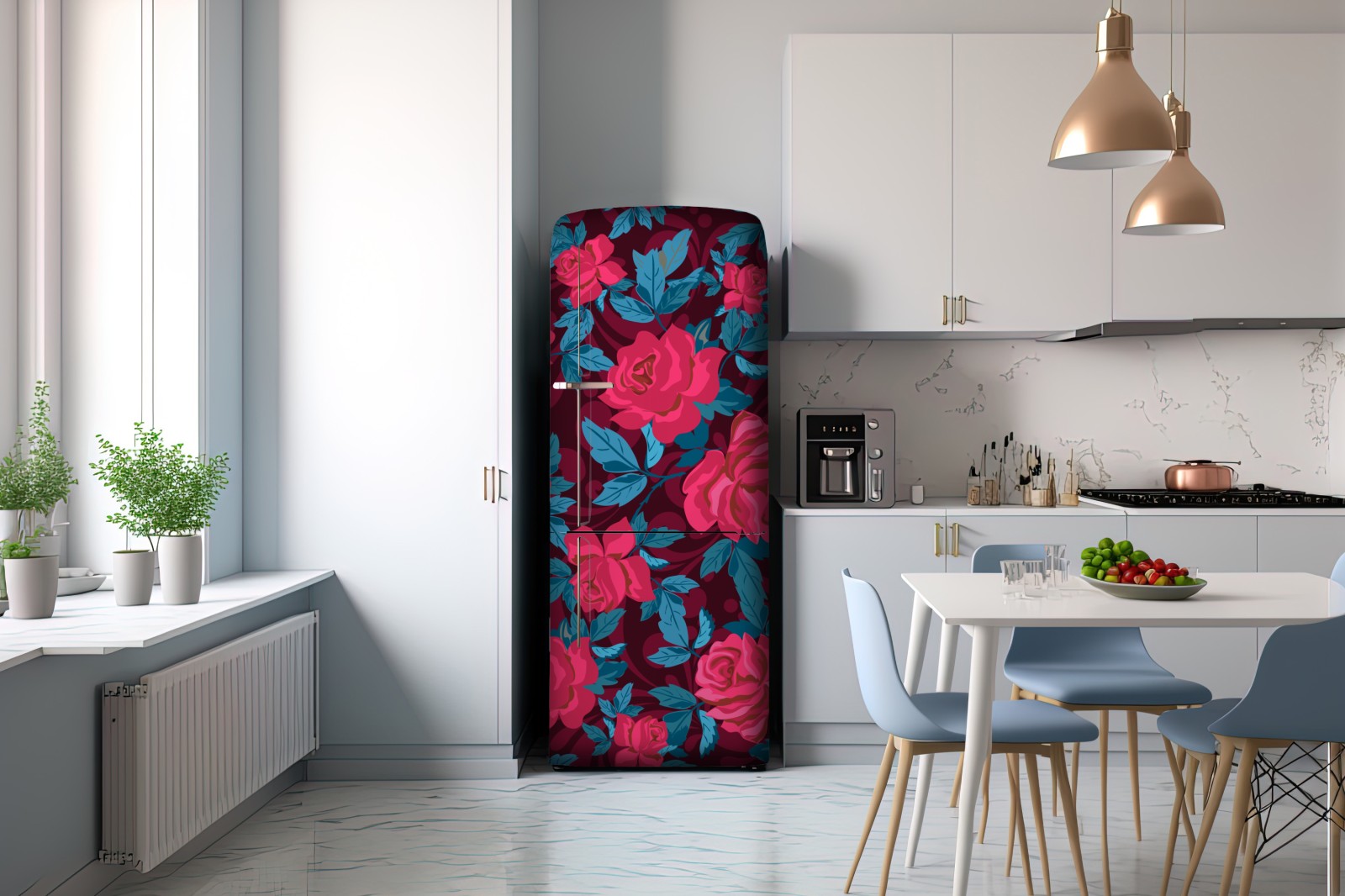 Kühlschrankaufkleber vintage rosenmuster in rosa und türkis