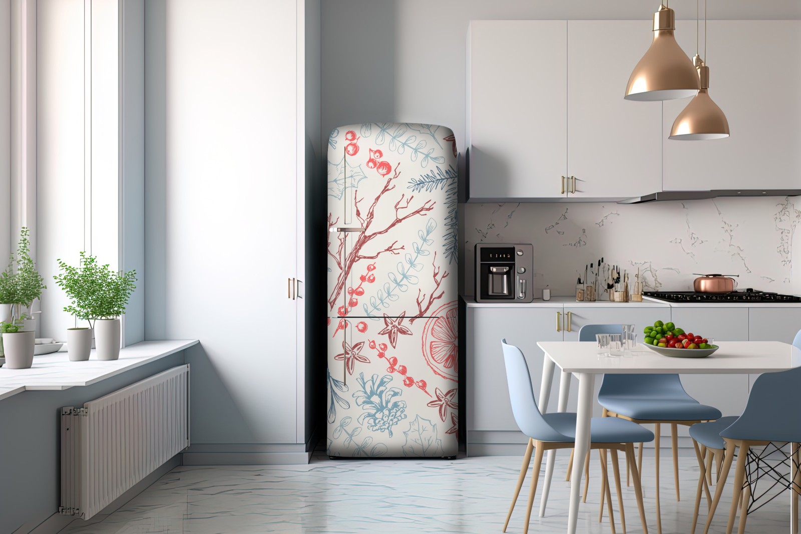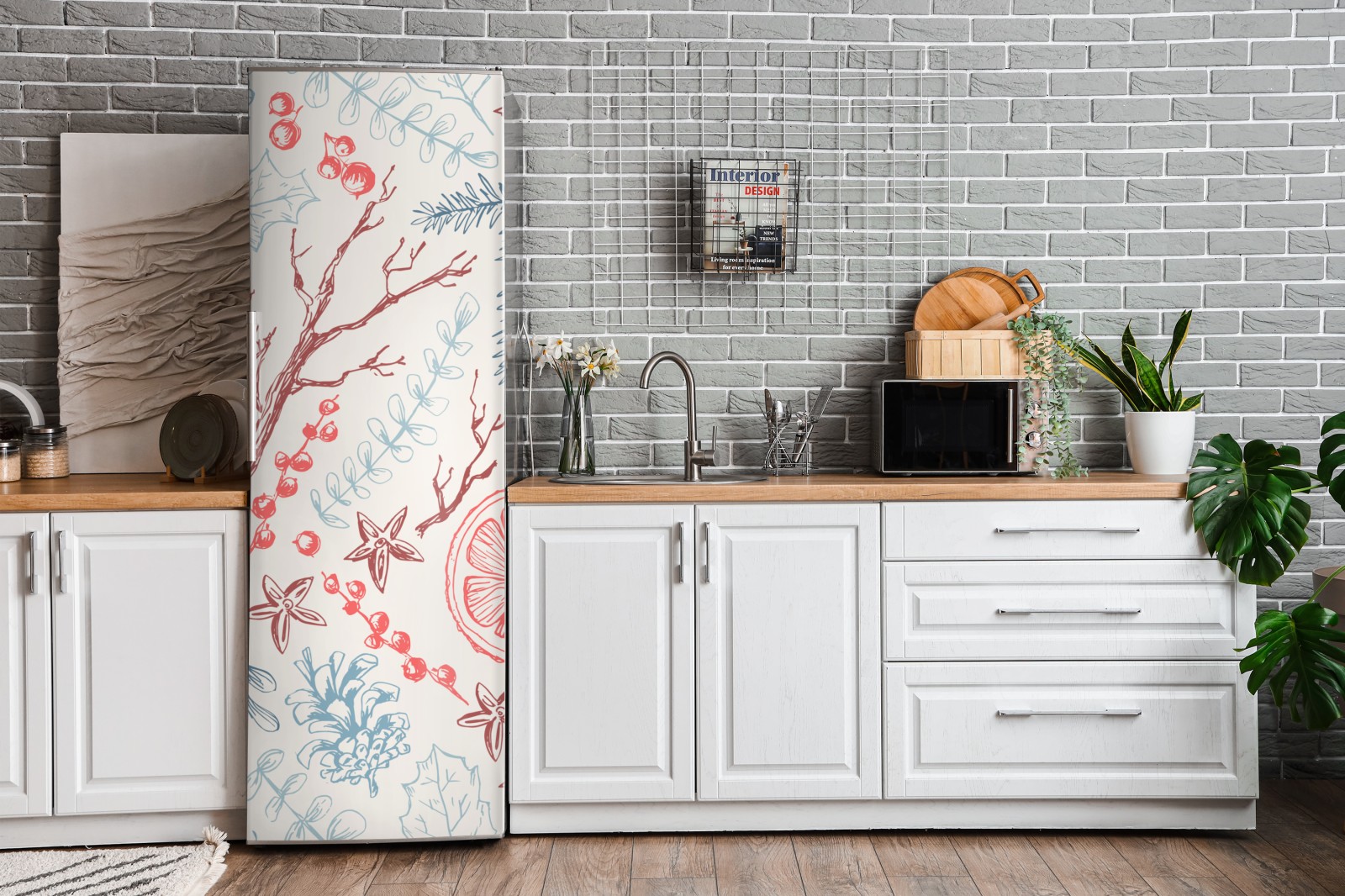 Kühlschrankaufkleber handgezeichnetes winterliches botanisches muster