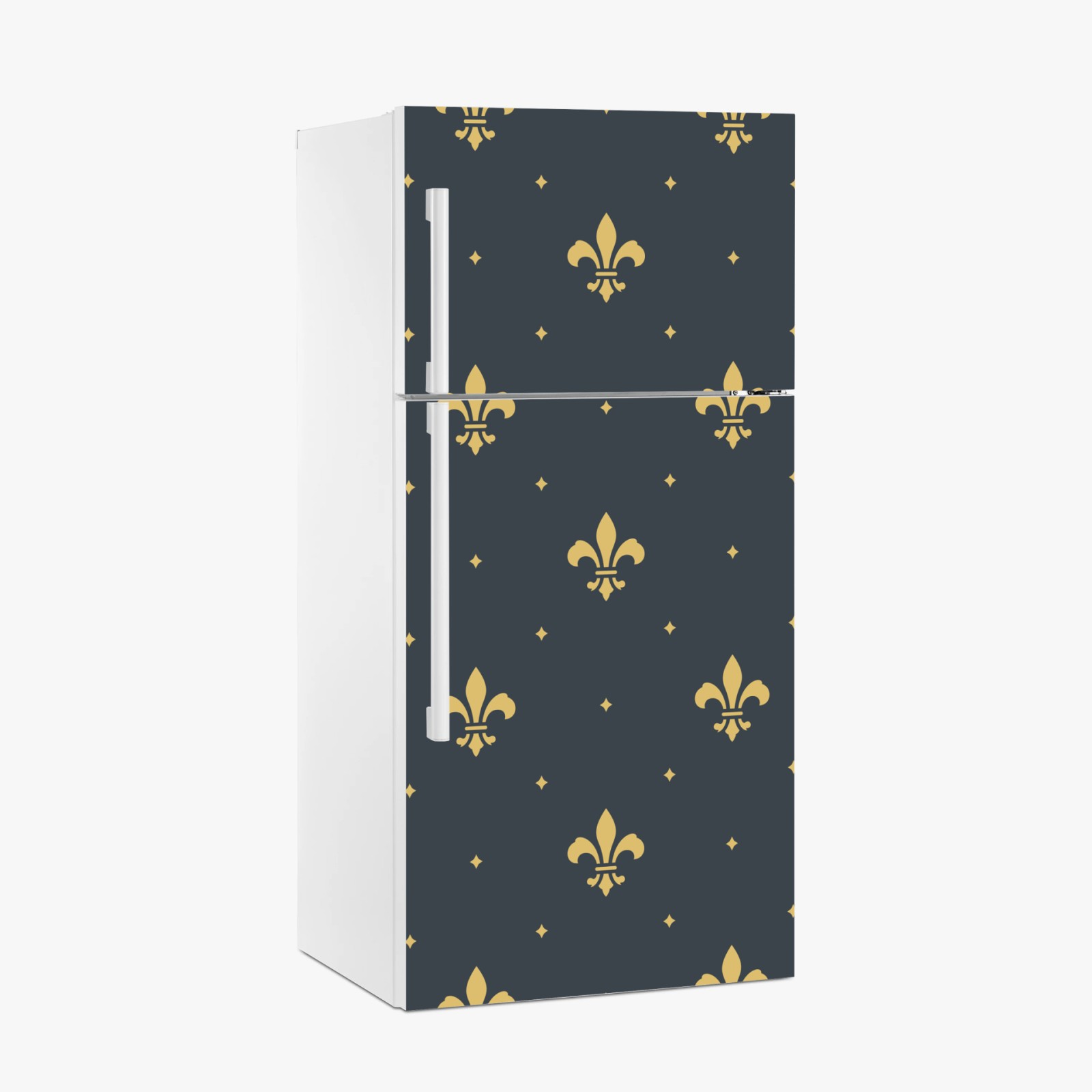 Kühlschrankaufkleber Goldenes lilienmuster auf dunklem hintergrund