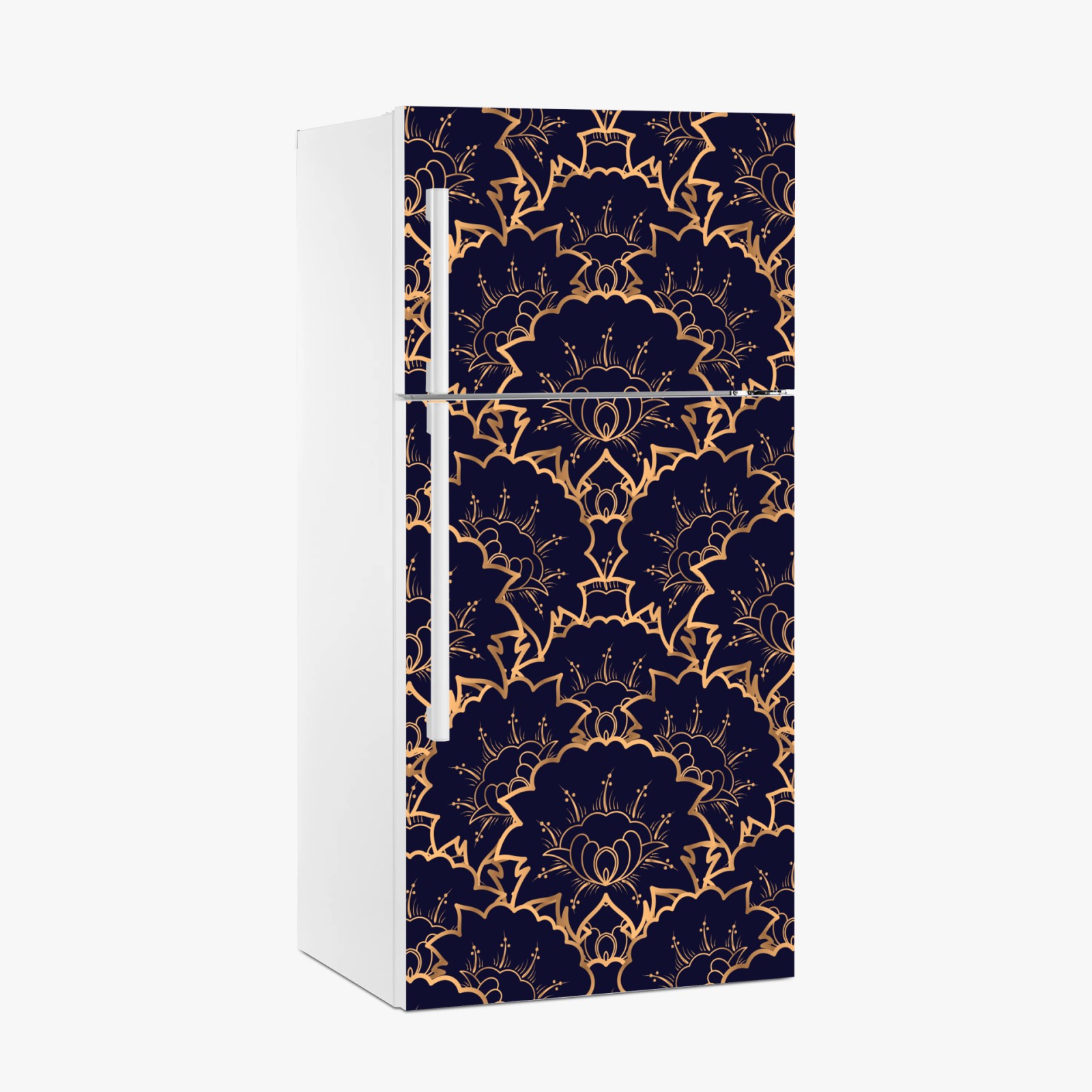 Kühlschrankaufkleber Luxuriöses goldenes blütenmuster auf marineblau