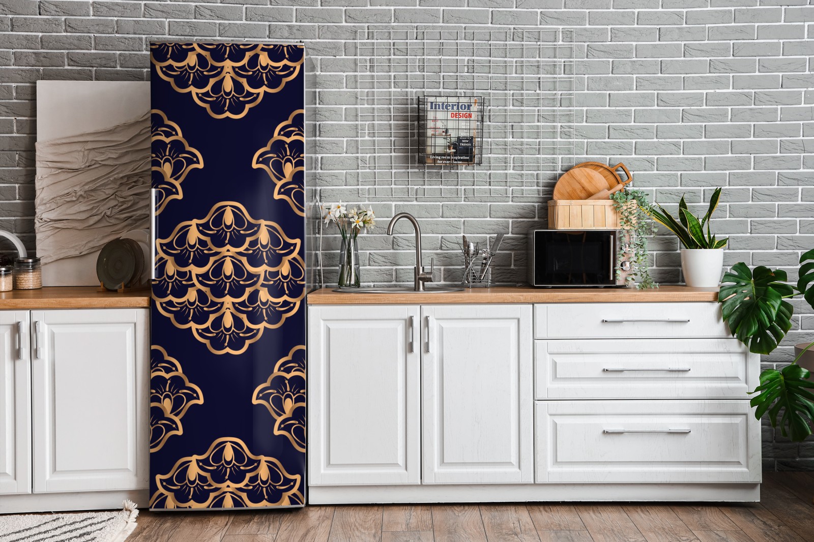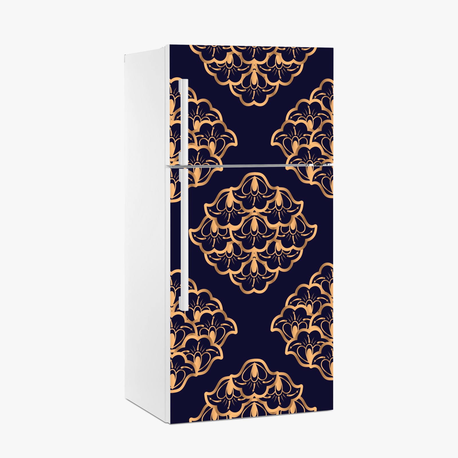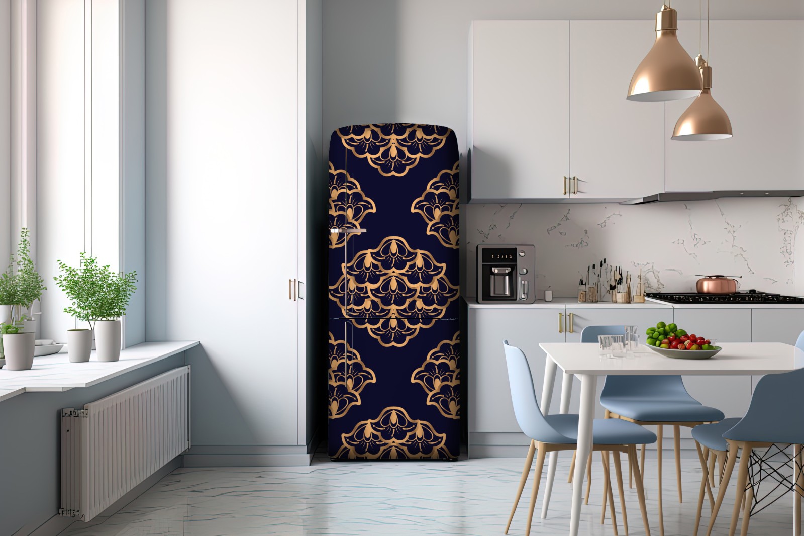 Kühlschrankaufkleber goldenes damastmuster auf marineblauem hintergrund