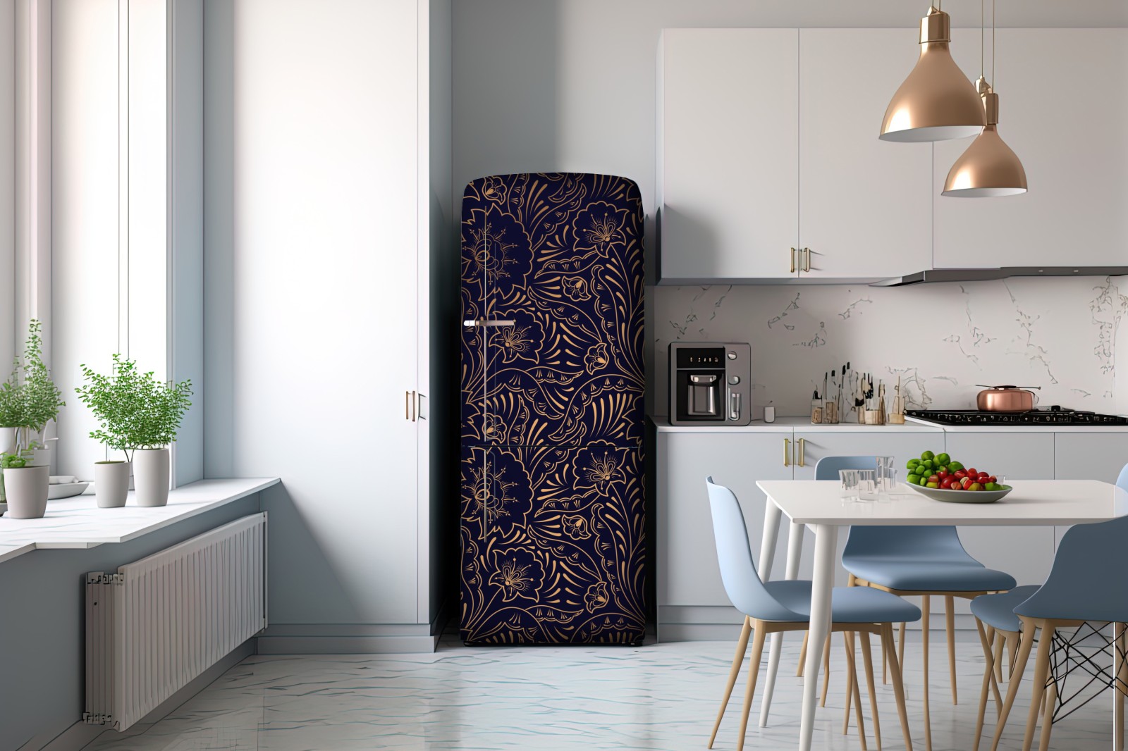 Kühlschrankaufkleber goldenes blumenornament auf nachtblauem hintergrund
