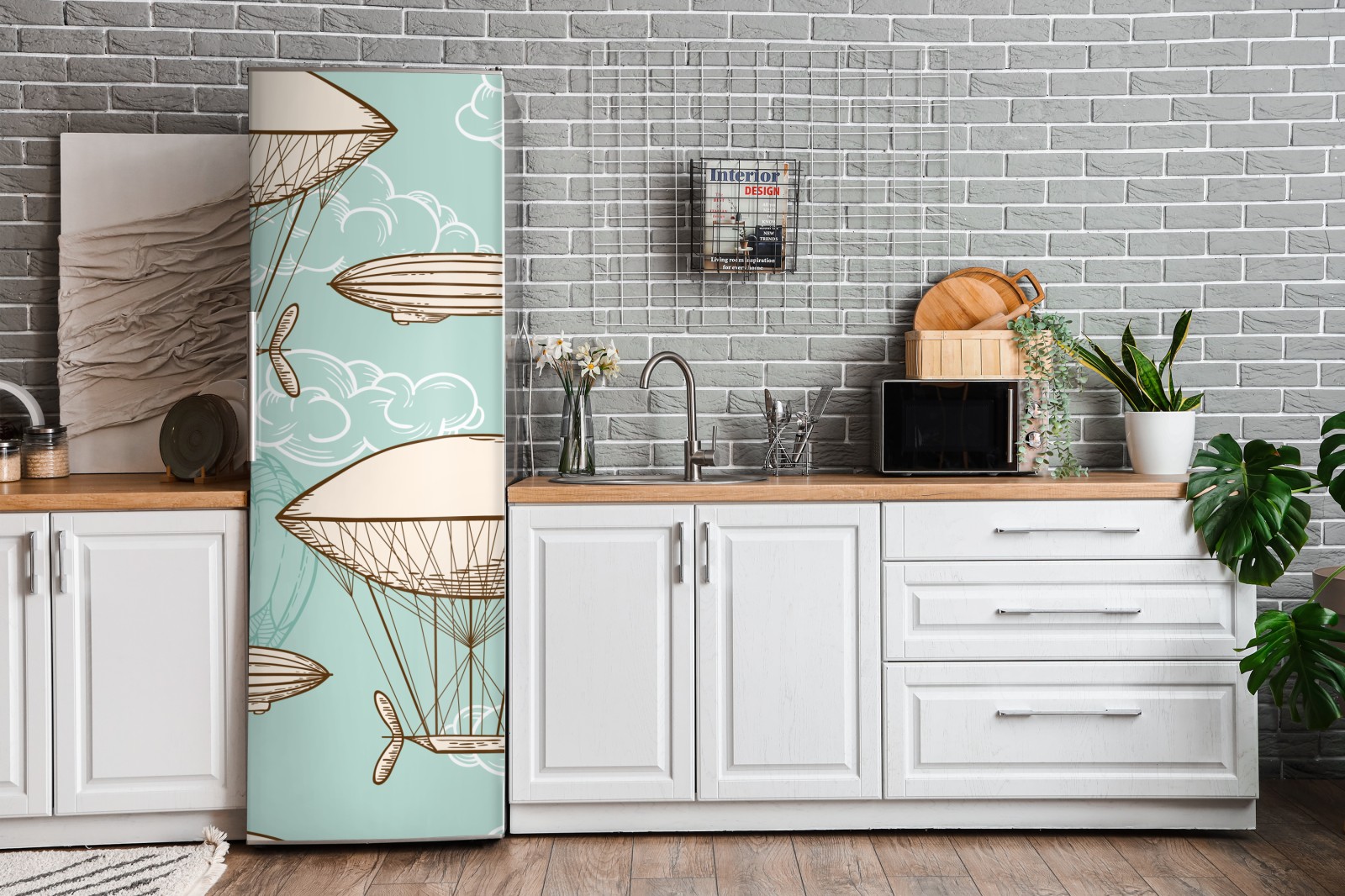 Kühlschrankaufkleber vintage-motiv mit luftschiffen und ballons