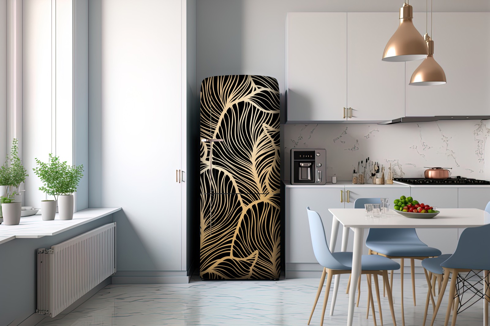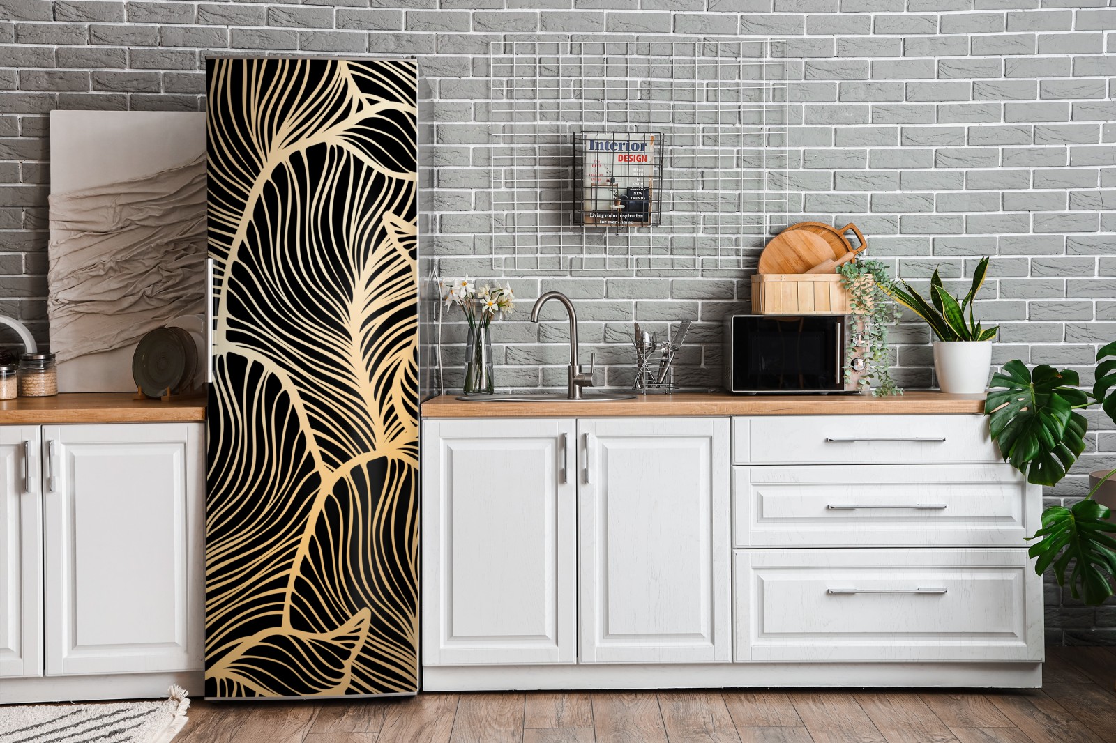 Kühlschrankaufkleber goldenes blattmuster auf schwarzem hintergrund