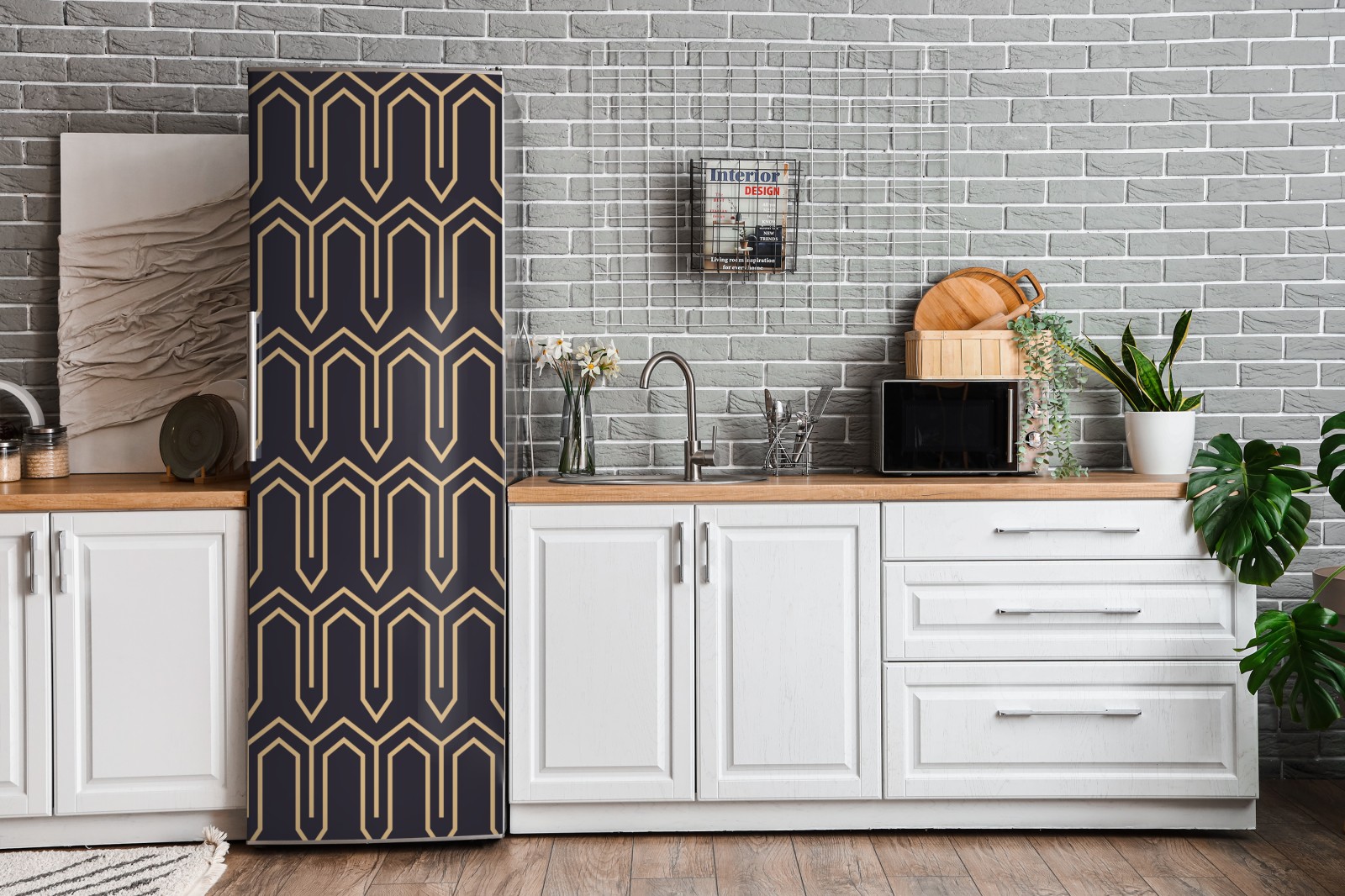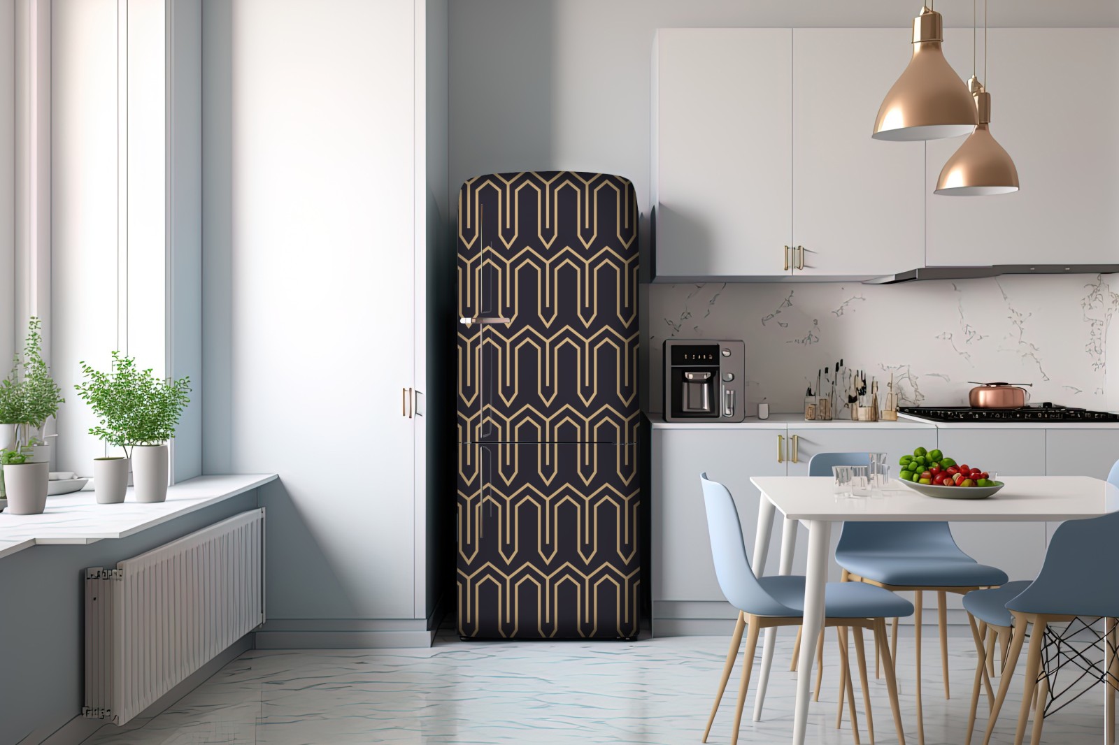 Kühlschrankaufkleber art deco geometrisches muster in gold und schwarz
