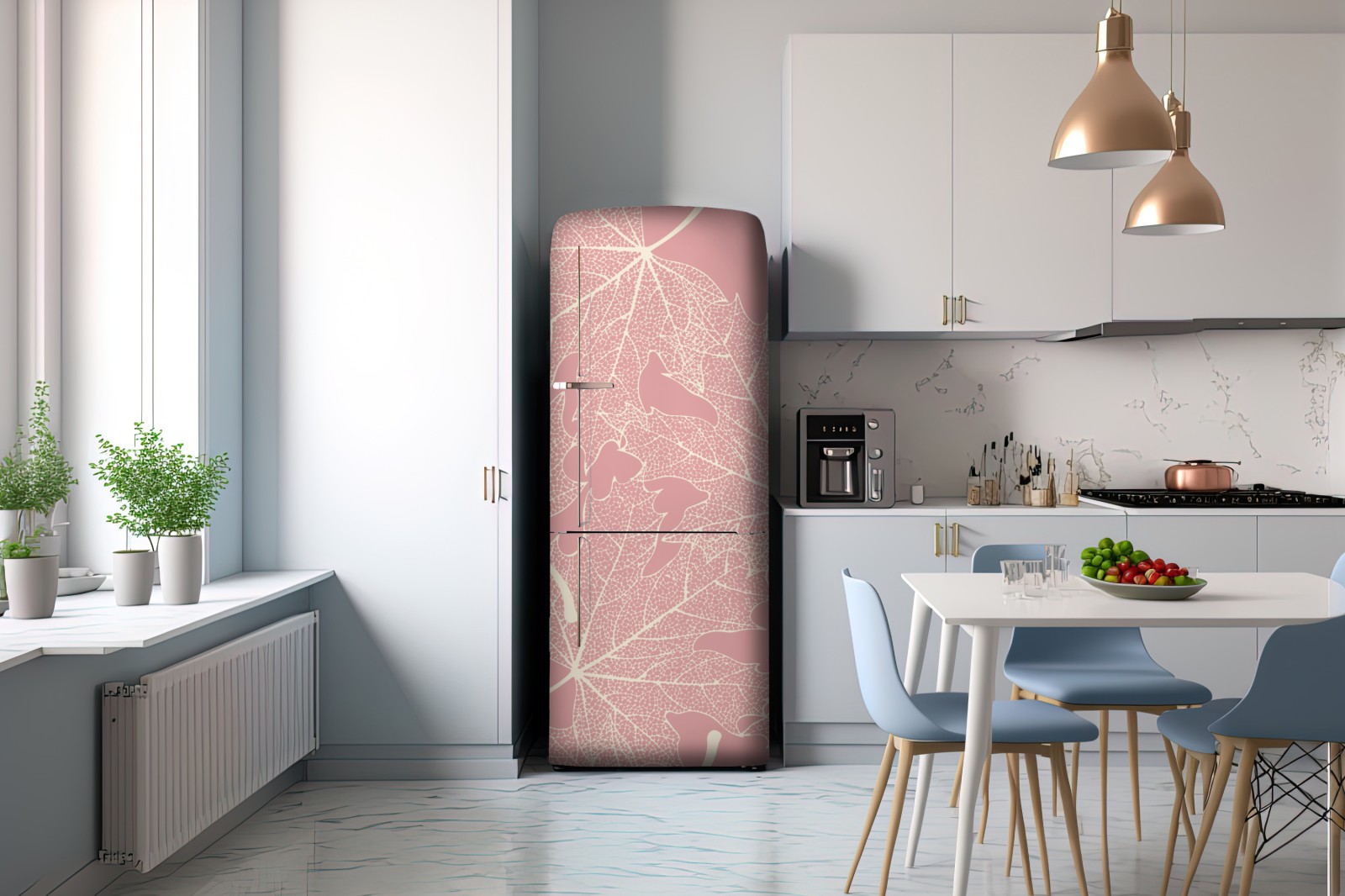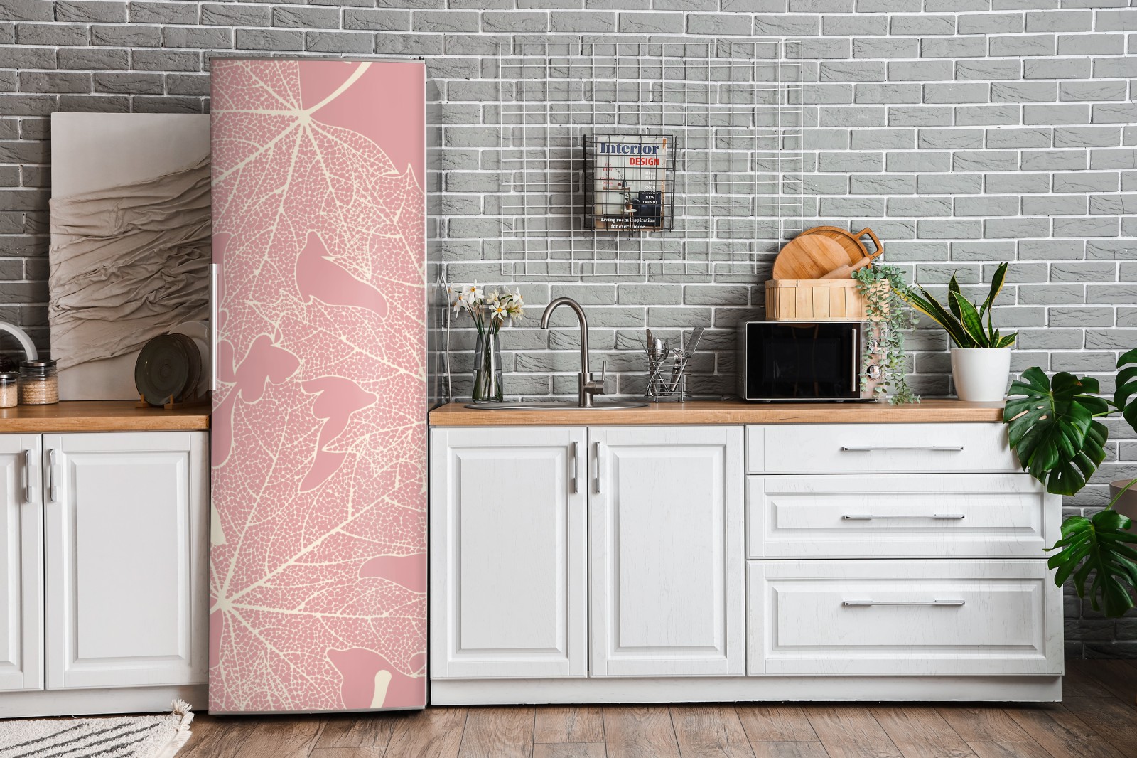 Kühlschrankaufkleber zartes rosa blattmuster