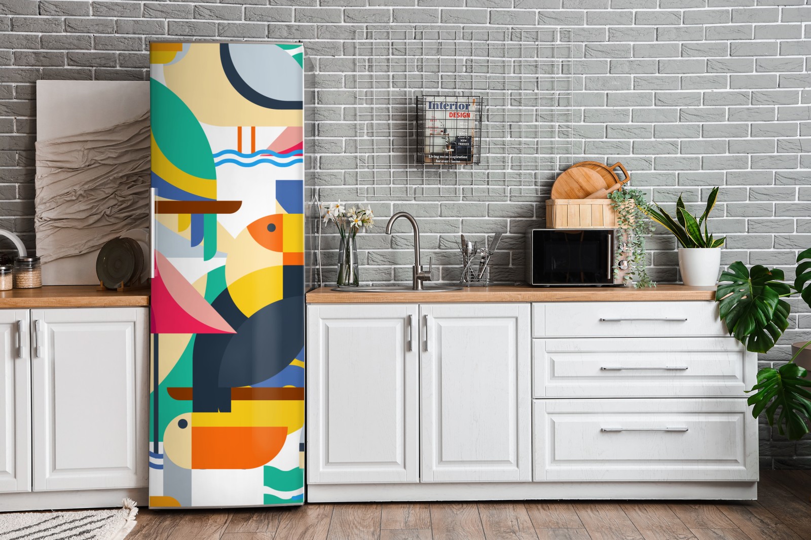 Kühlschrankaufkleber tropisches geometrisches vogelmuster
