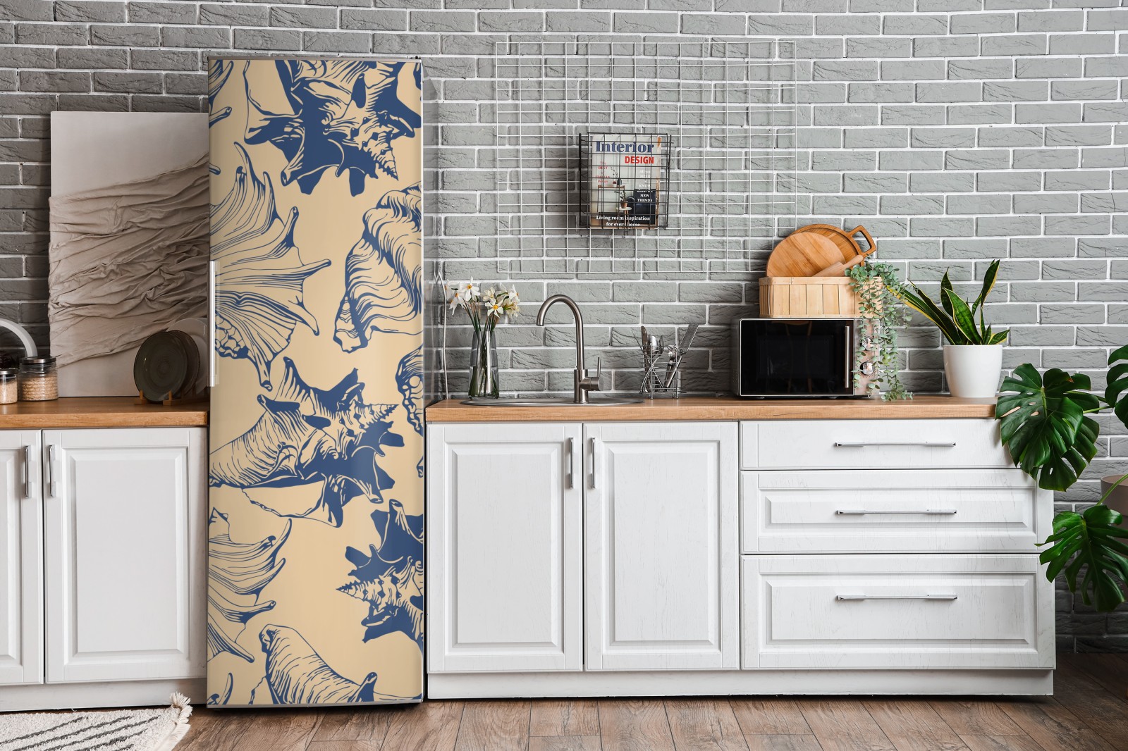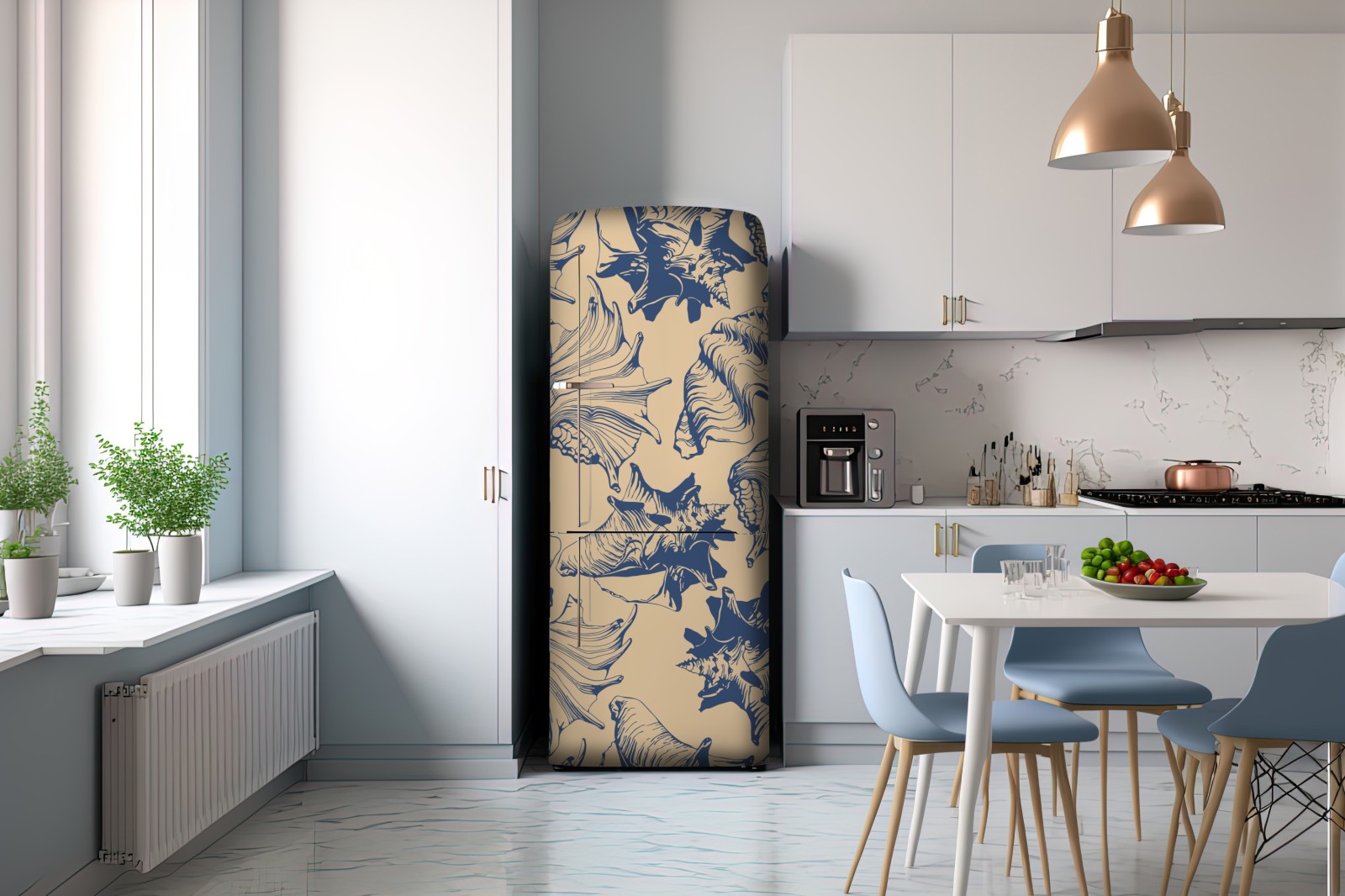 Kühlschrankaufkleber muschelmuster in blau und beige