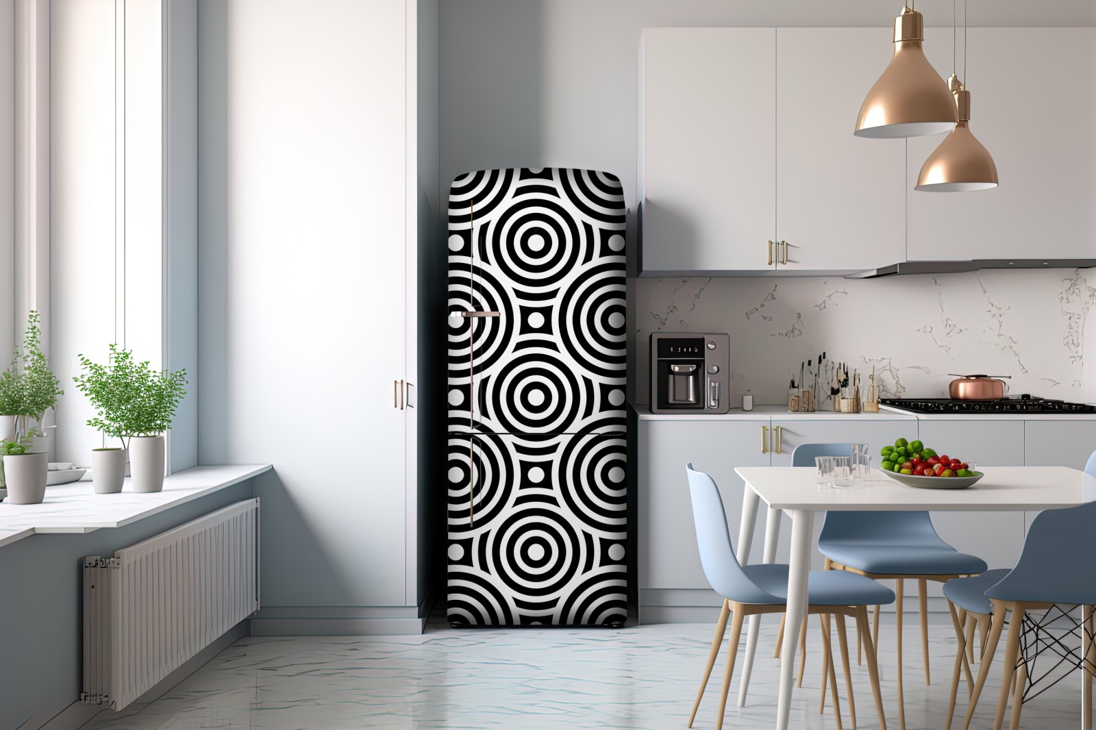 Kühlschrankaufkleber schwarz-weiß muster aus konzentrischen kreisen
