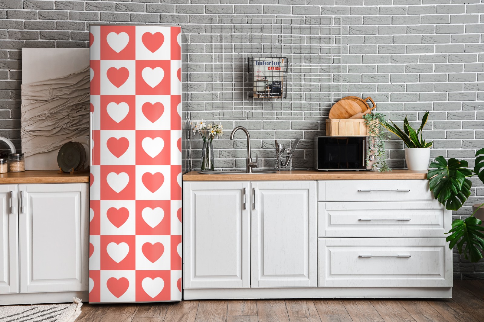 Kühlschrankaufkleber rosa herzen schachbrettmuster