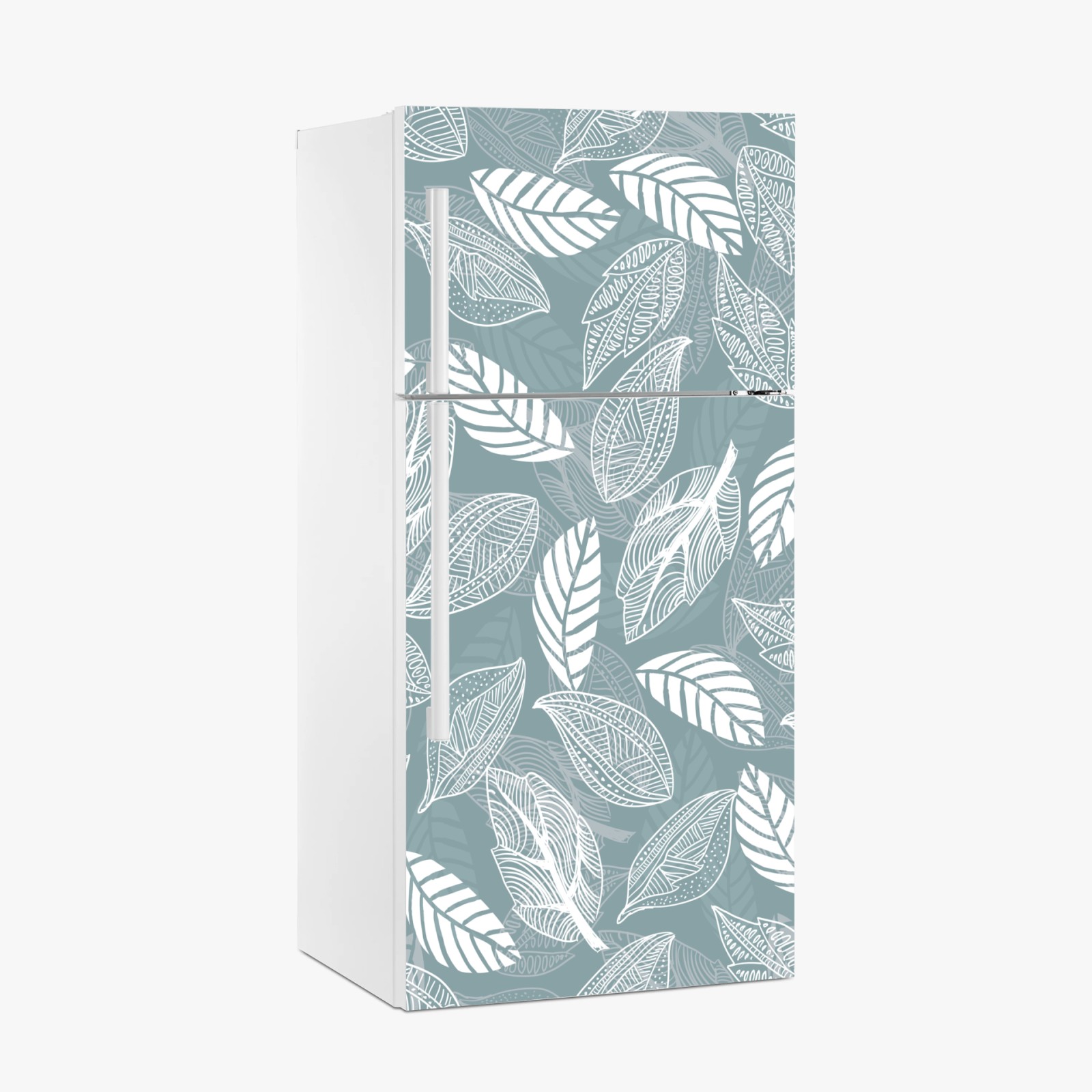 Kühlschrankaufkleber Handgezeichnetes blättermuster auf türkisfarbenem hintergrund