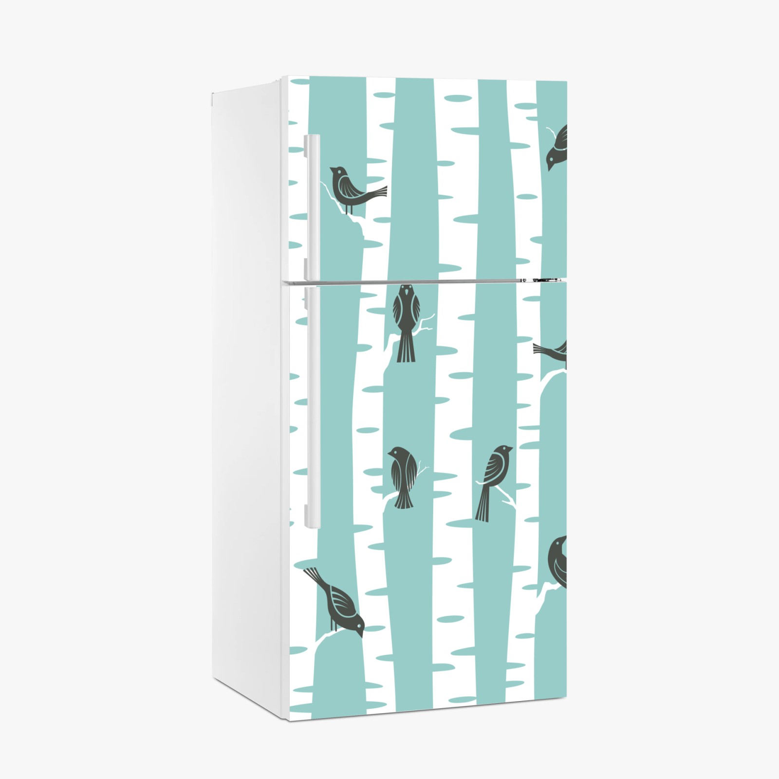 Kühlschrankaufkleber Türkis birkenwald mit vögeln