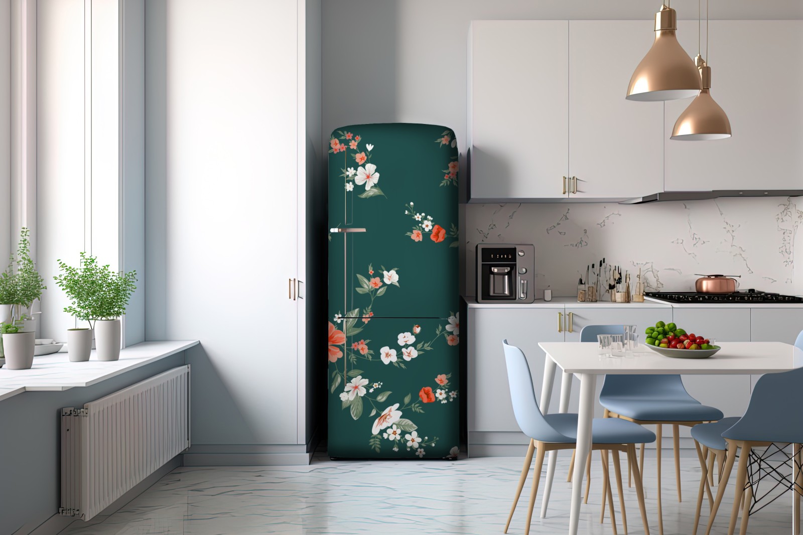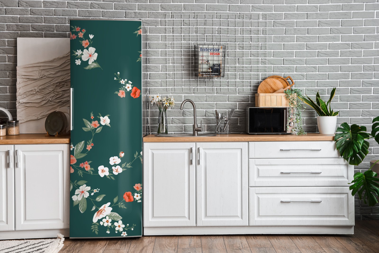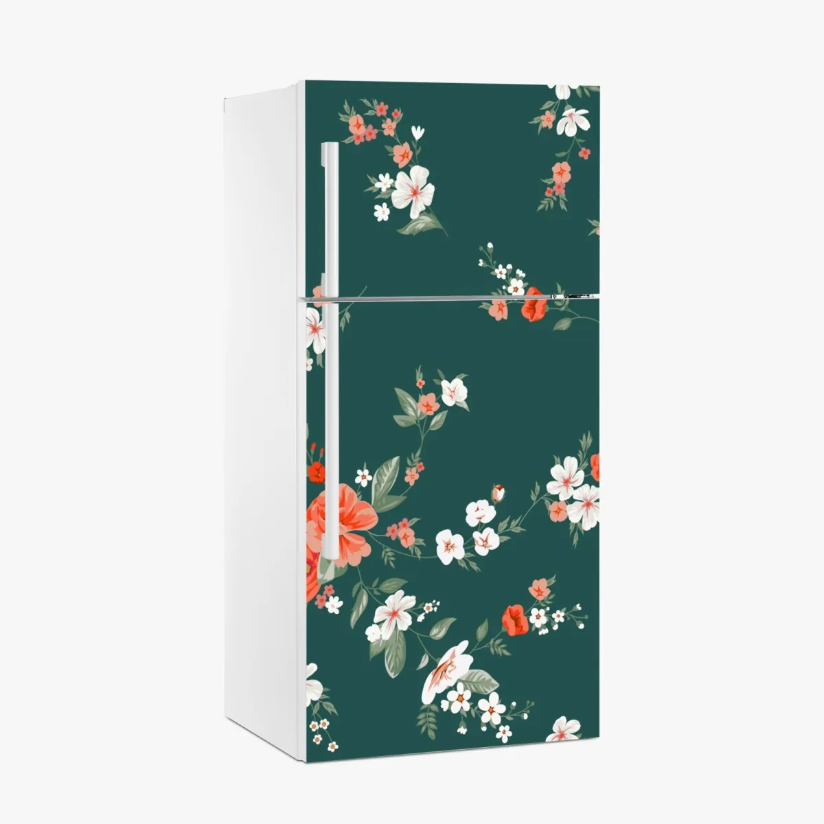 Kühlschrankaufkleber vintage korallenblumenmuster auf tiefgrünem hintergrund