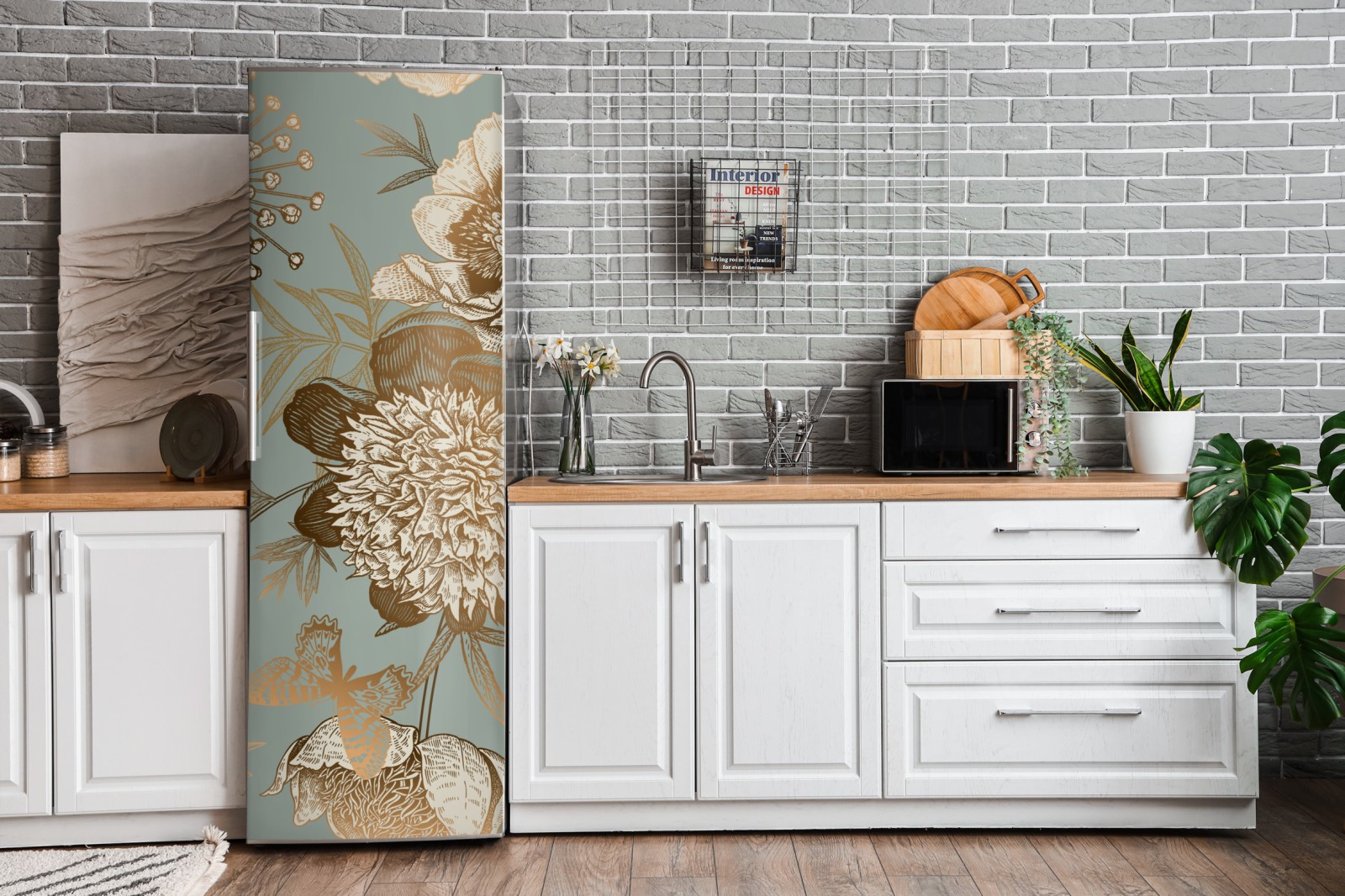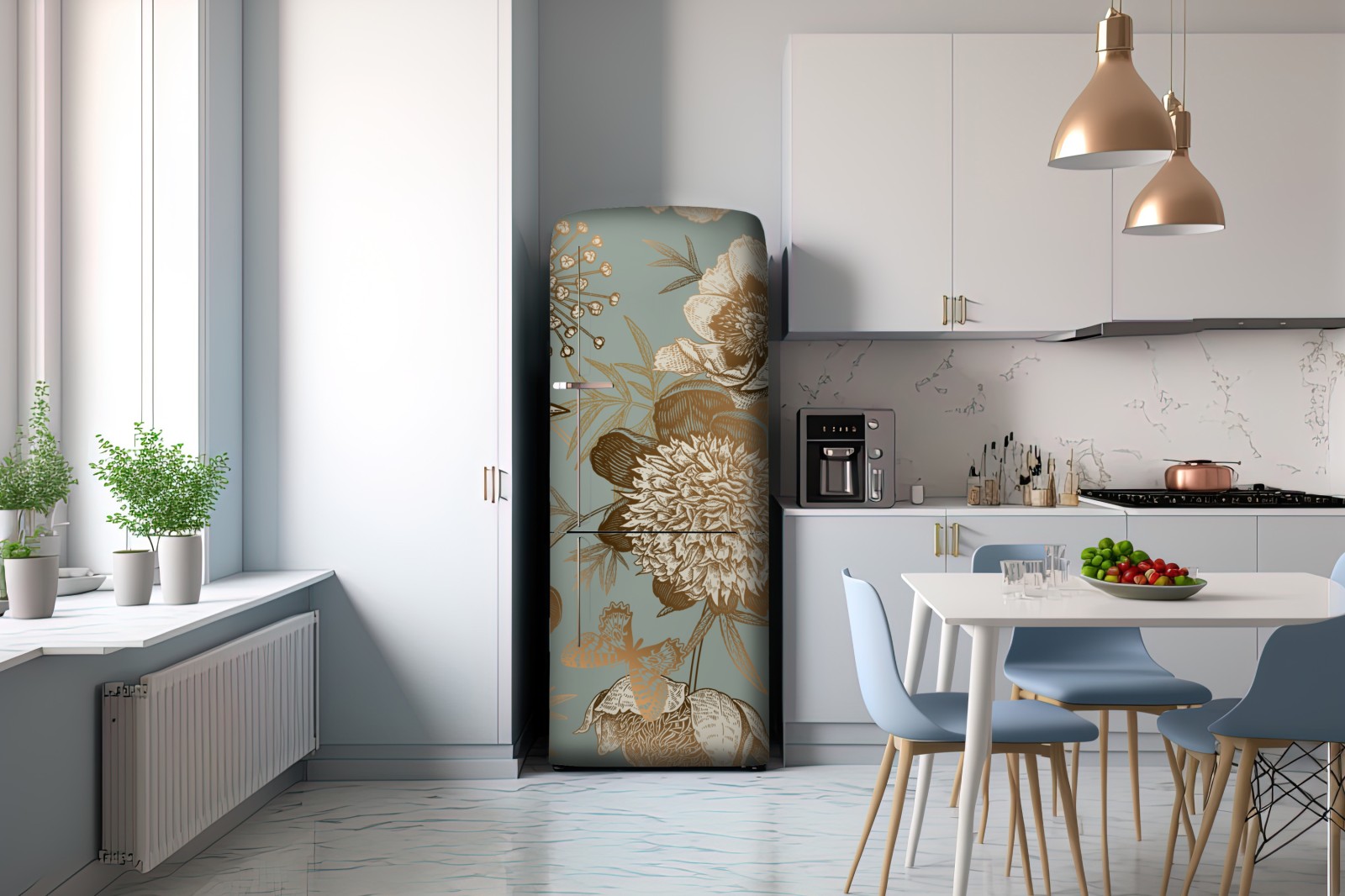 Kühlschrankaufkleber vintage botanisches blumenmotiv mit vogel