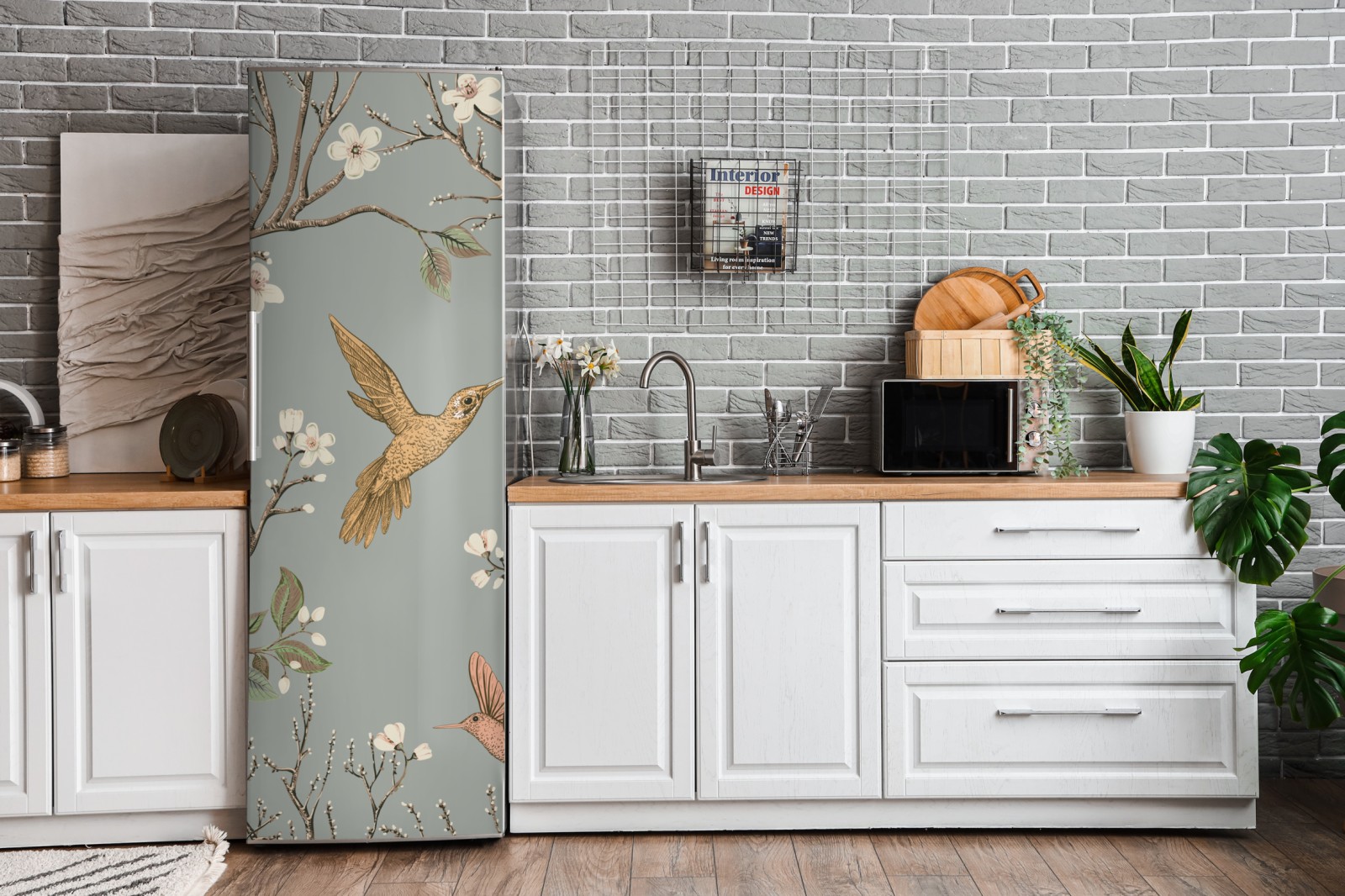 Kühlschrankaufkleber vintage-muster mit kolibris und blüten