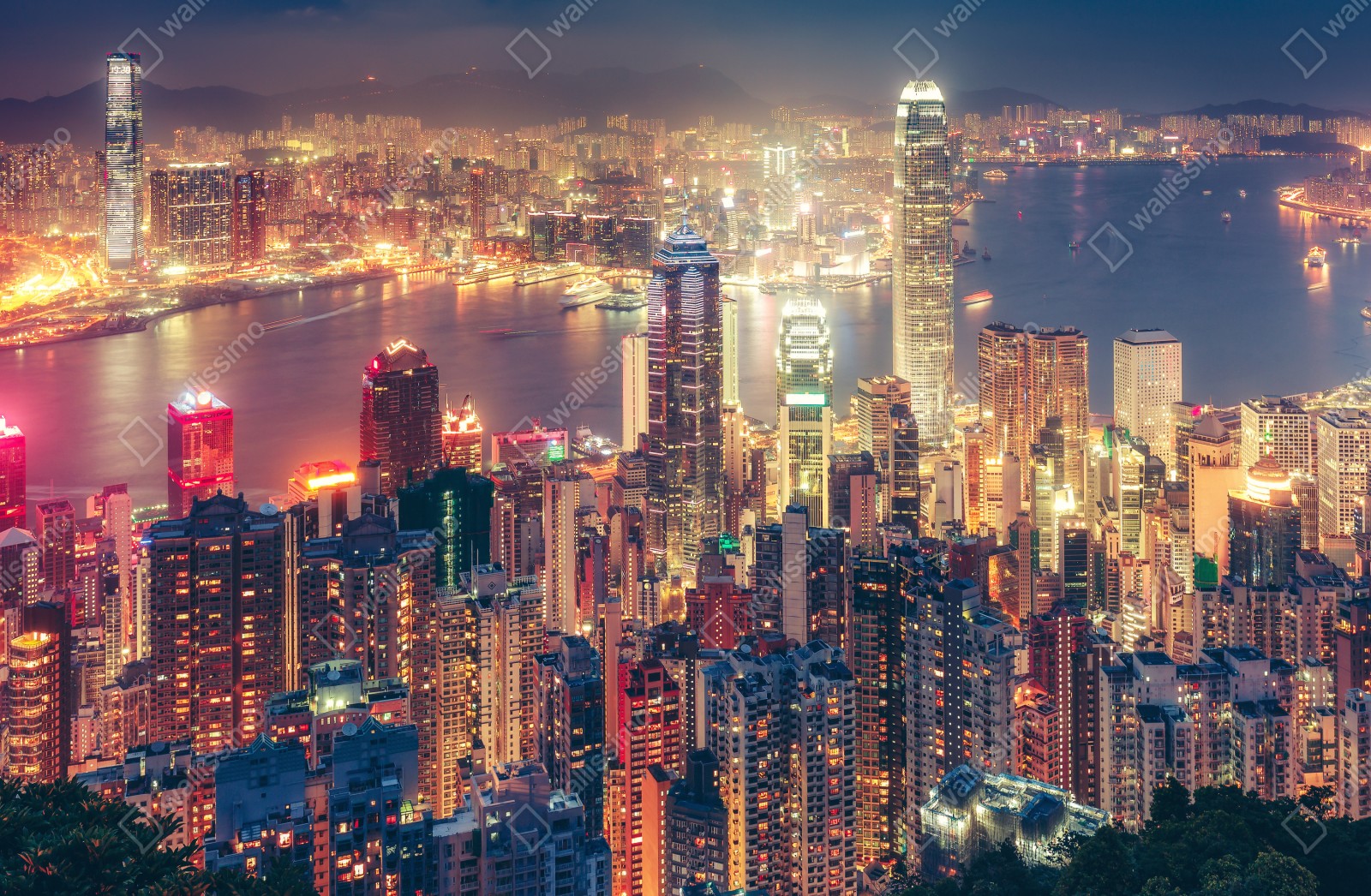 Beeindruckende nächtliche Panoramaansicht von Hongkong vom Victoria Peak, ideal um modernen urbanen Charme in Ihr Zuhause zu bringen.
