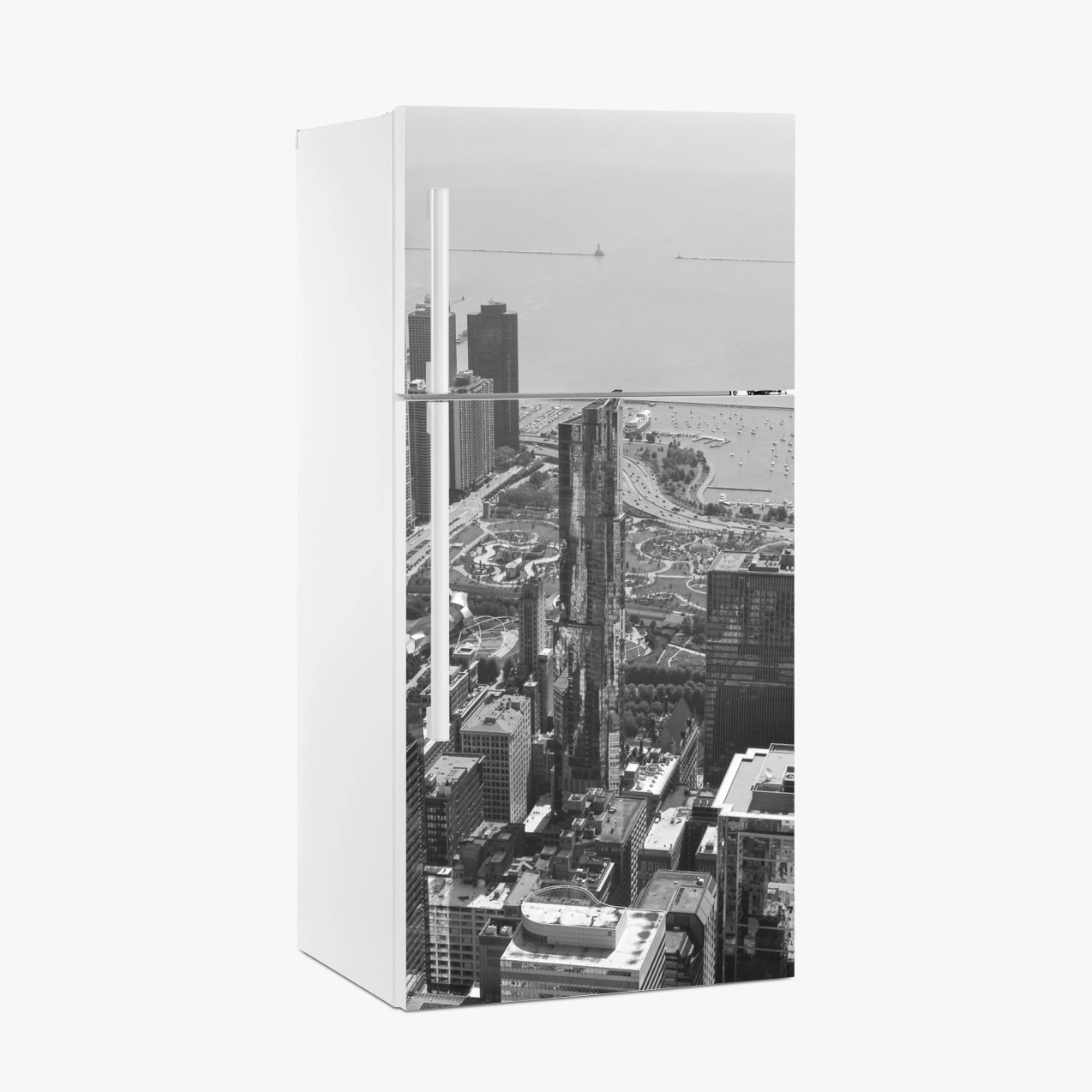 Kühlschrankaufkleber Schwarzweißes stadtpanorama am ufer