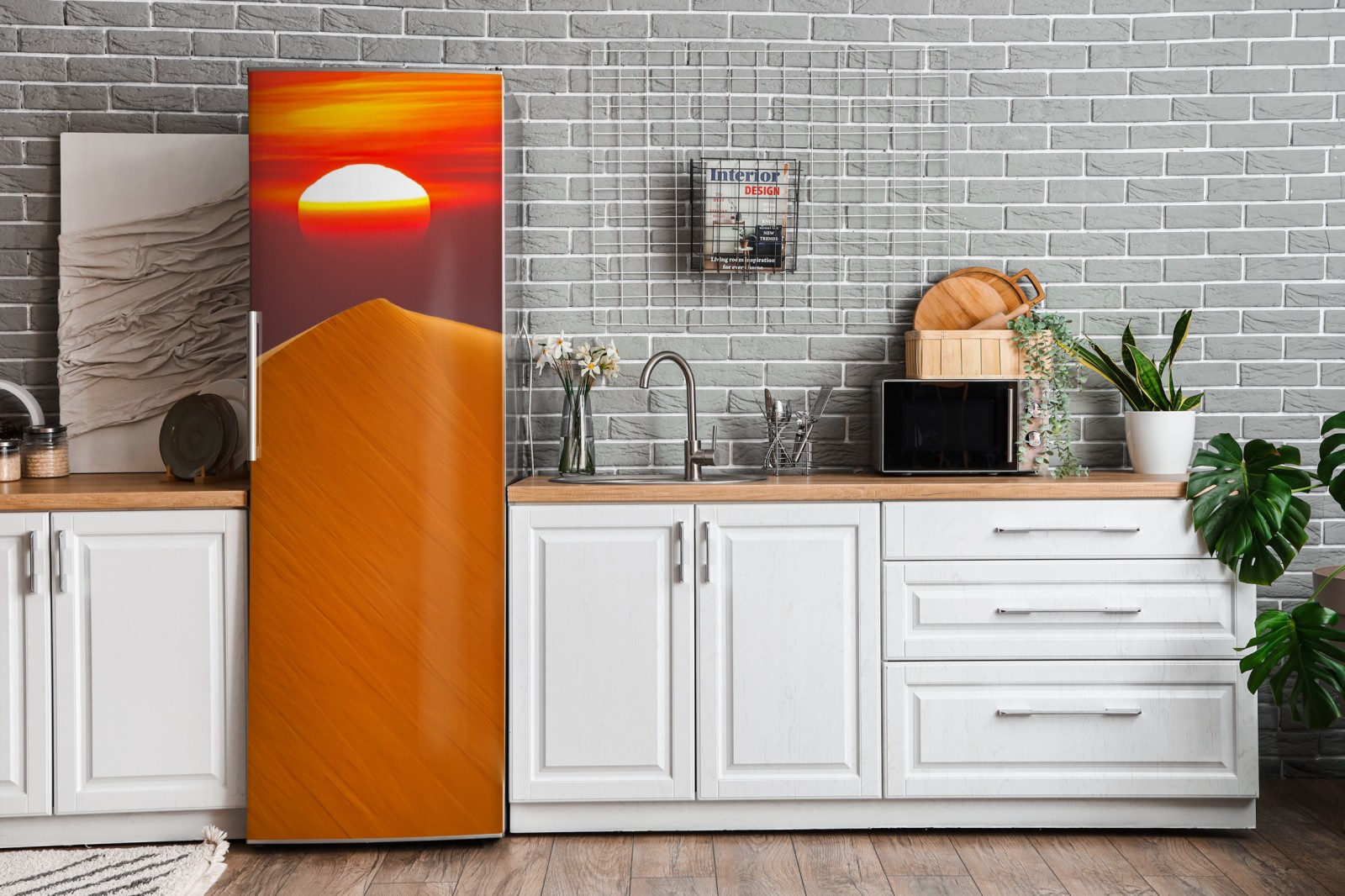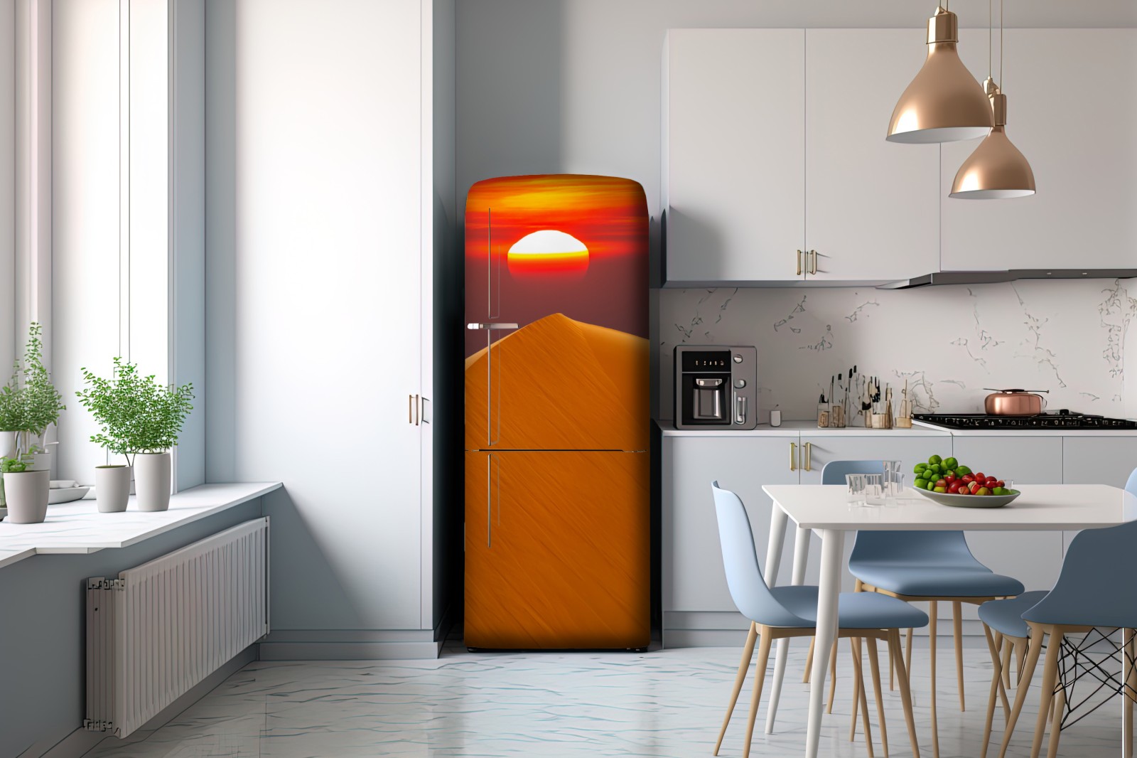 Kühlschrankaufkleber goldener sonnenuntergang über sanddünen