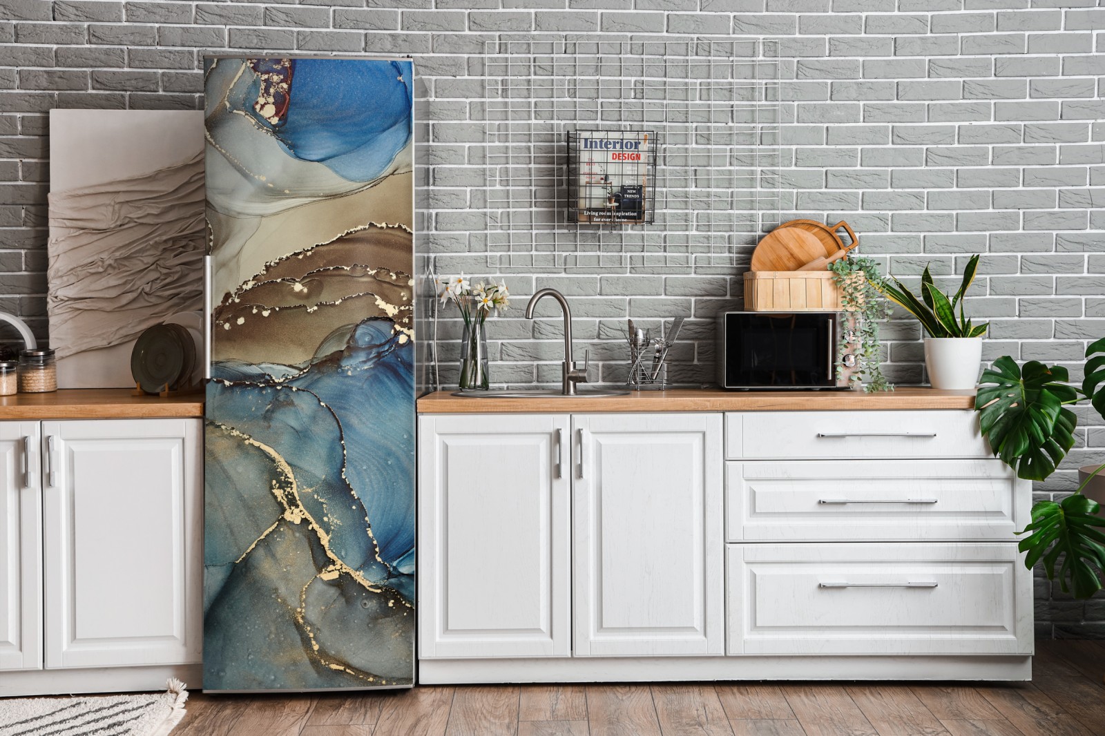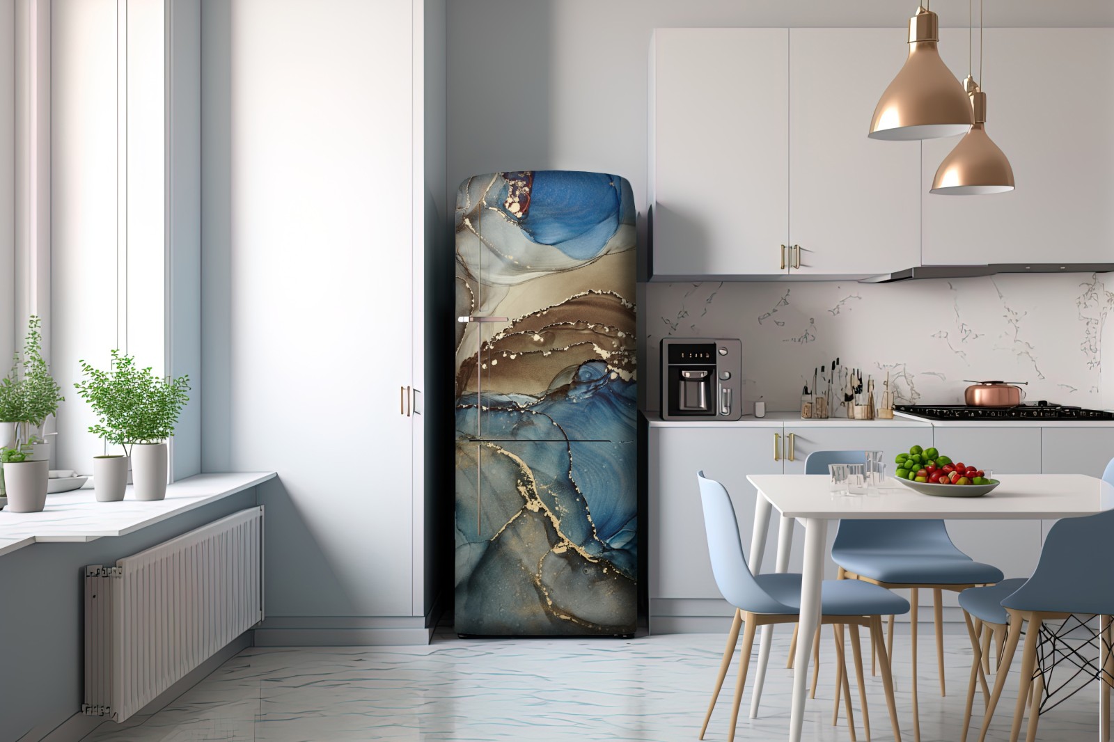 Kühlschrankaufkleber blaue und goldene flüssige abstraktion