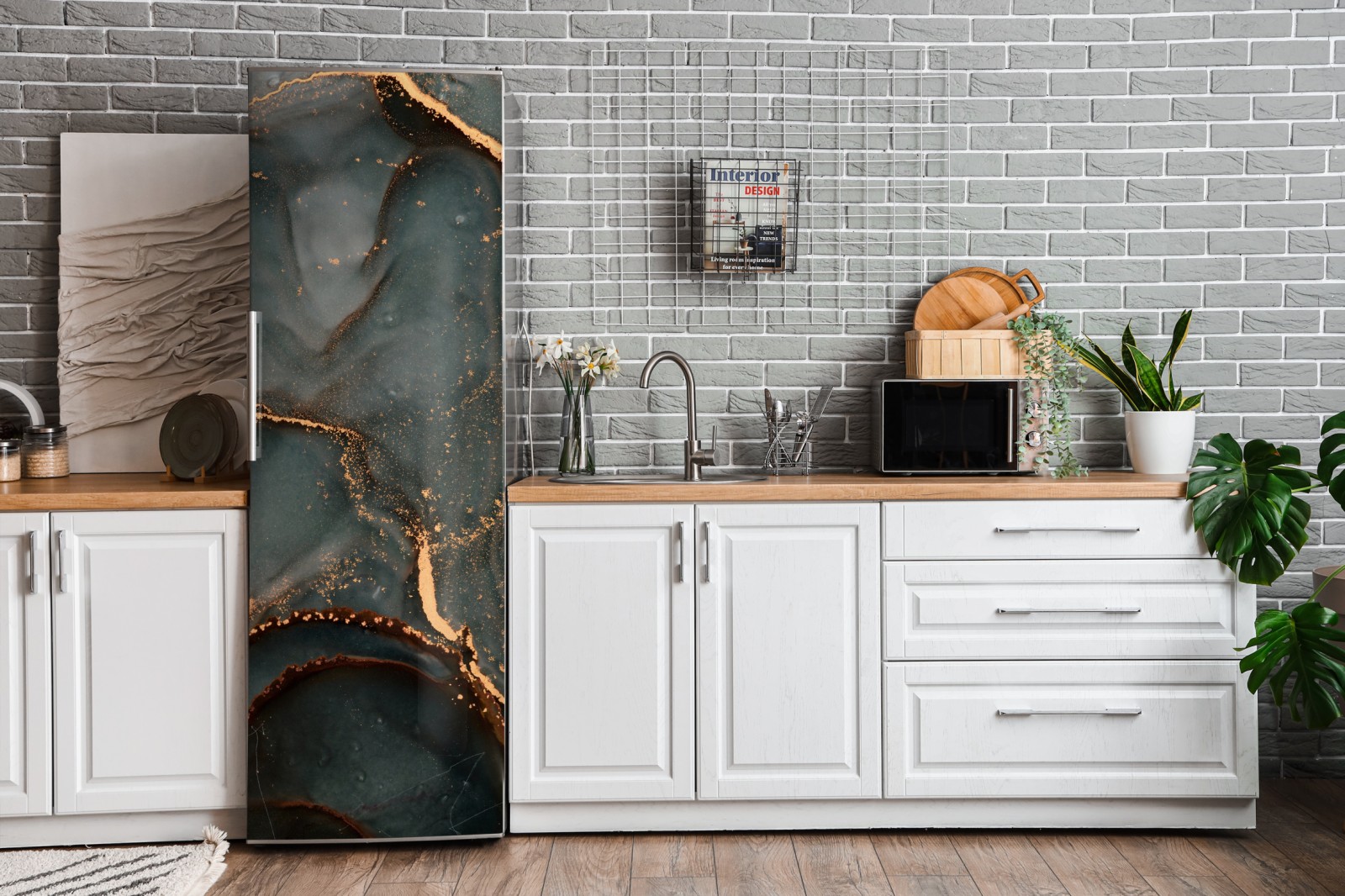 Kühlschrankaufkleber luxuriöse türkis abstraktion mit goldenen adern