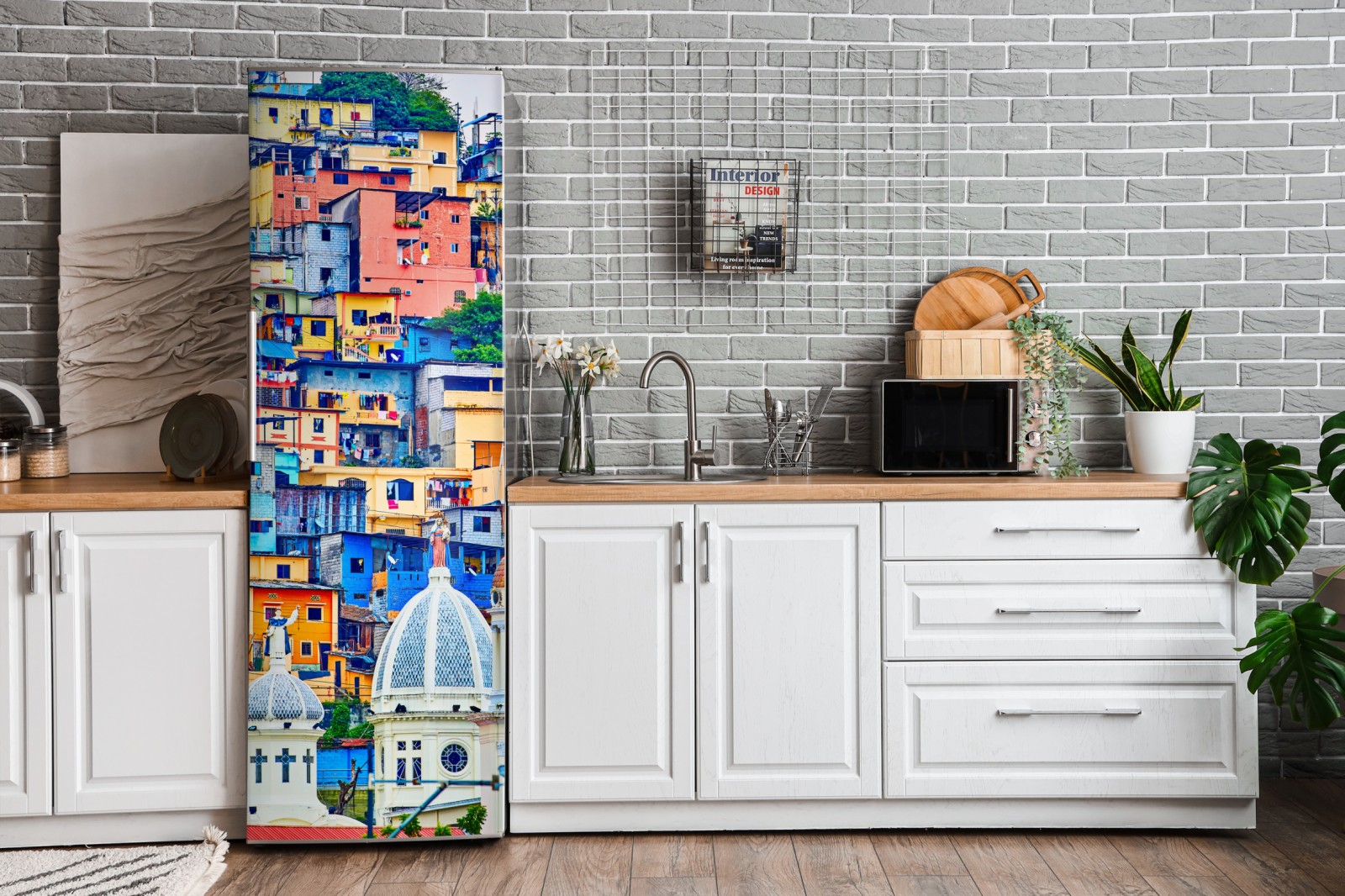 Kühlschrankaufkleber bunte häuser von Las Peñas am Santa Ana hügel, Guayaquil