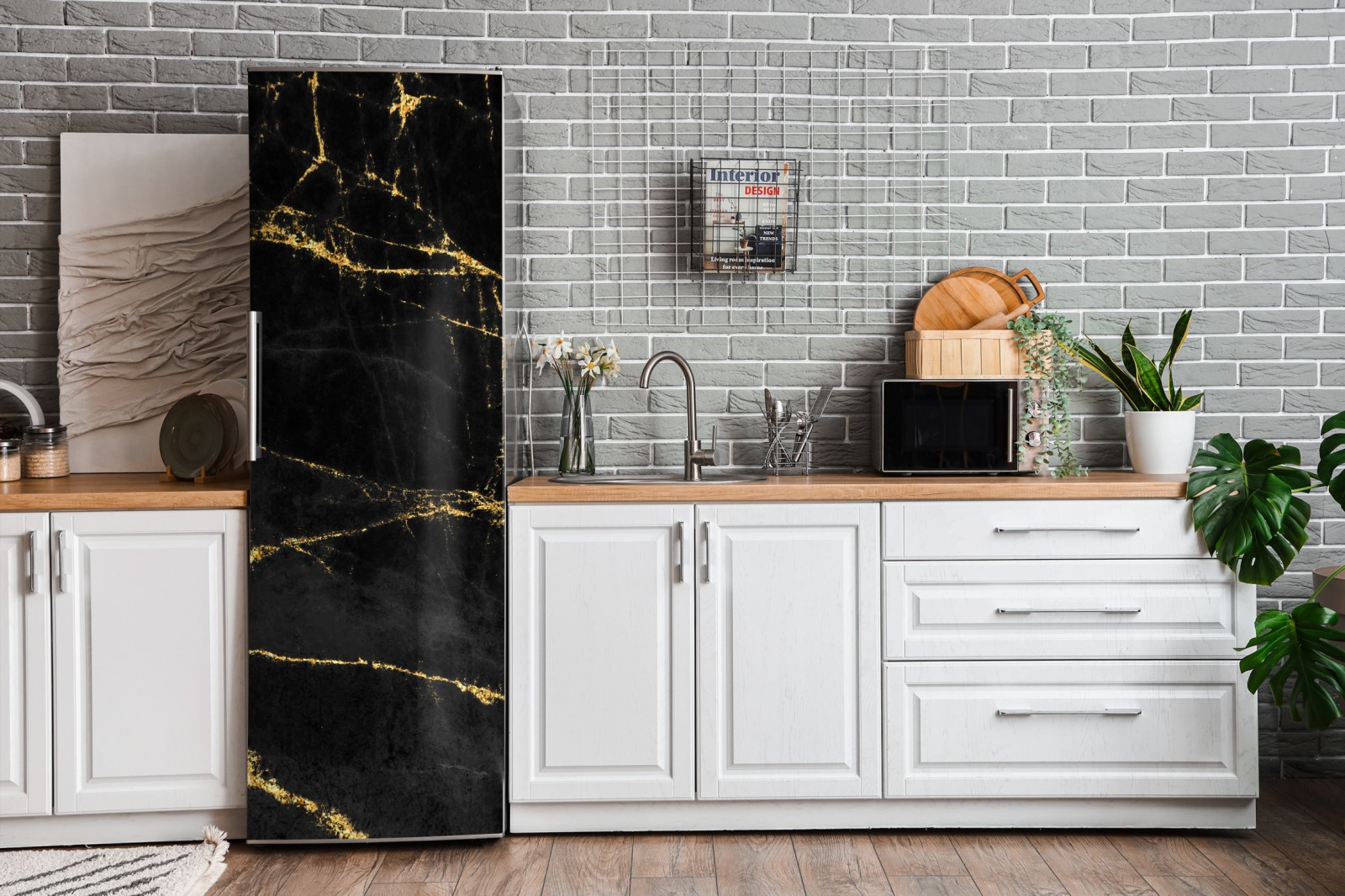 Kühlschrankaufkleber schwarzer marmor mit goldenen adern