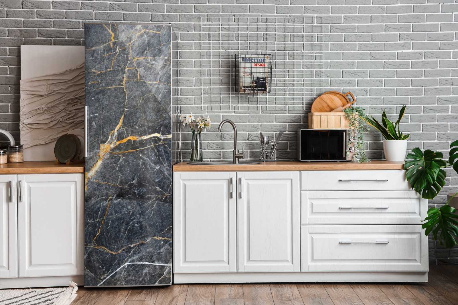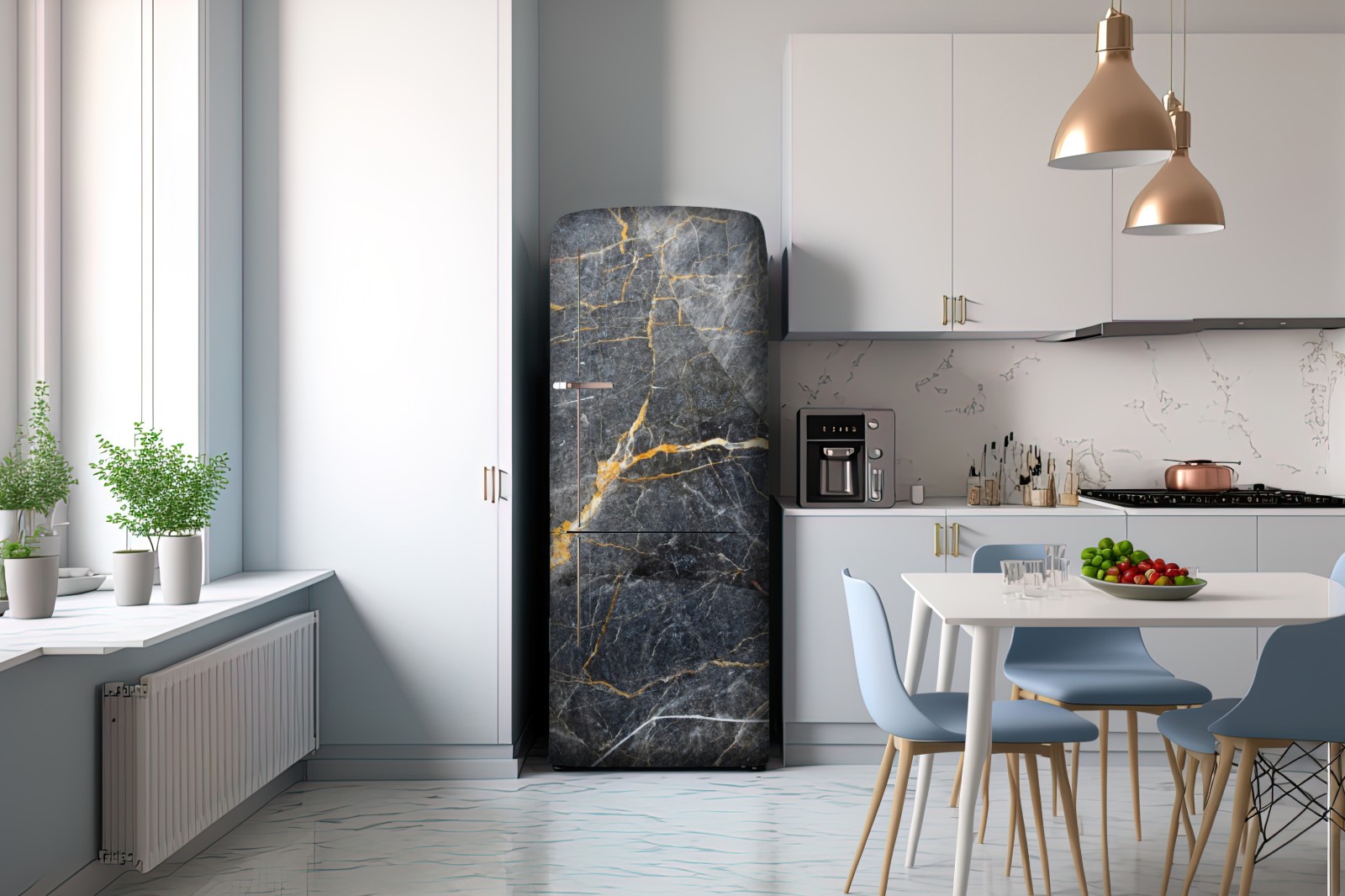 Kühlschrankaufkleber dunkelgrauer marmor mit goldenen adern