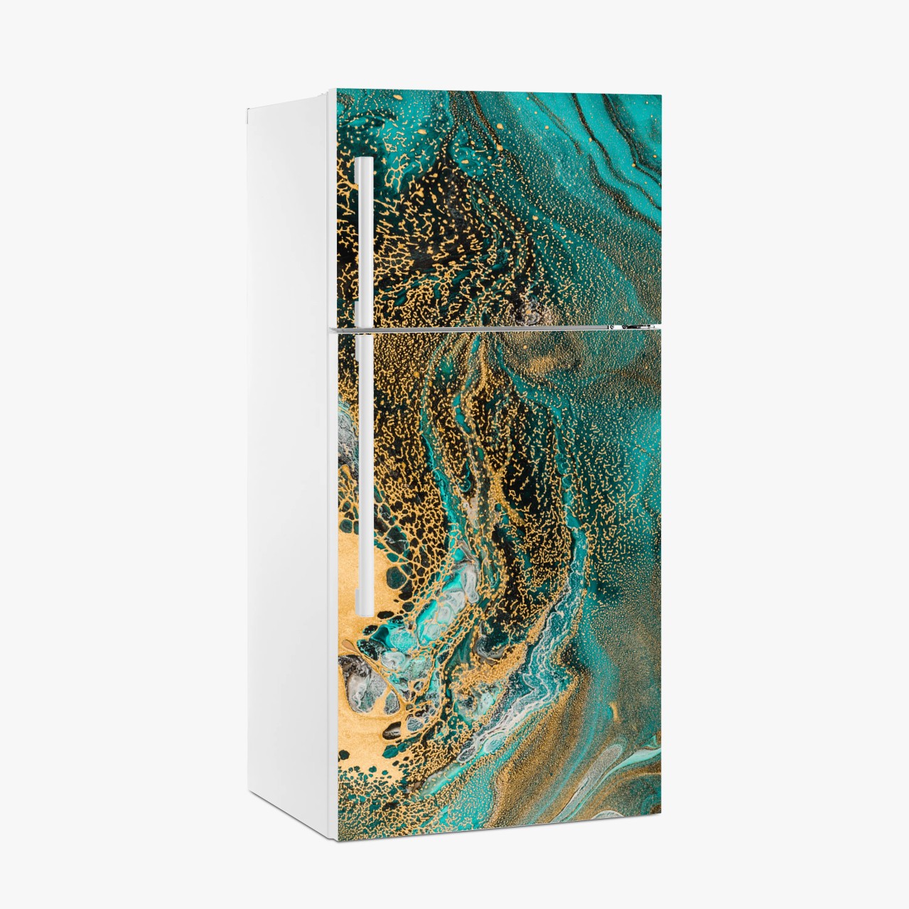 Kühlschrankaufkleber Türkis und gold fließende abstraktion