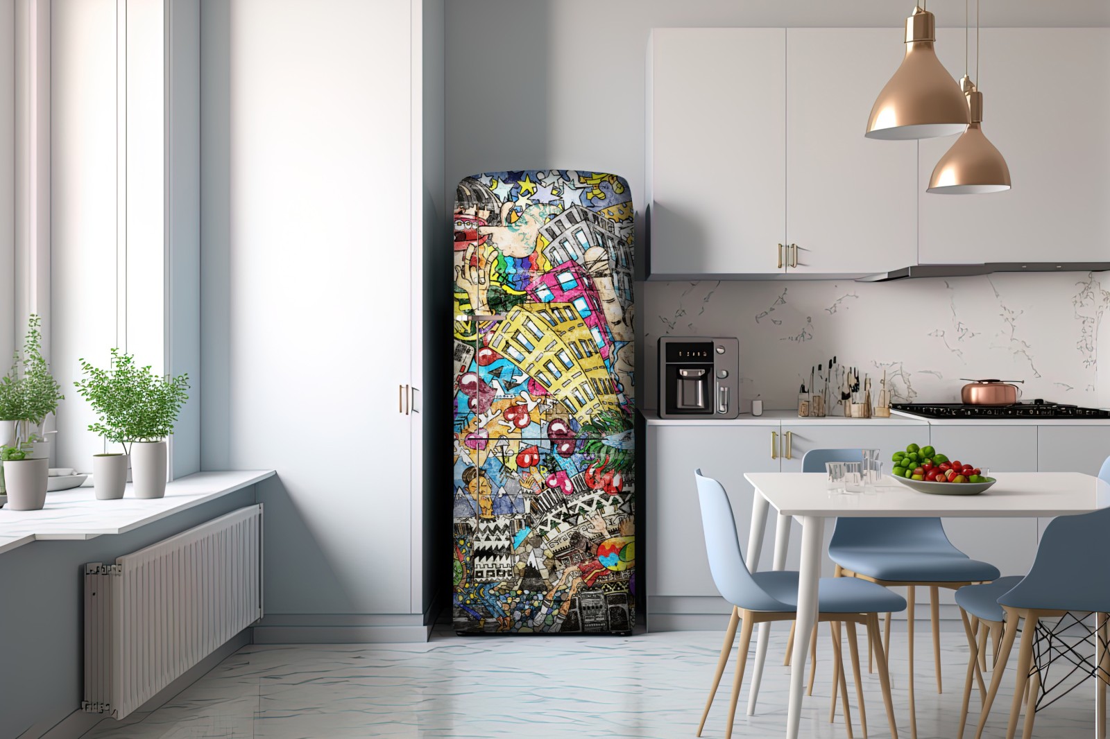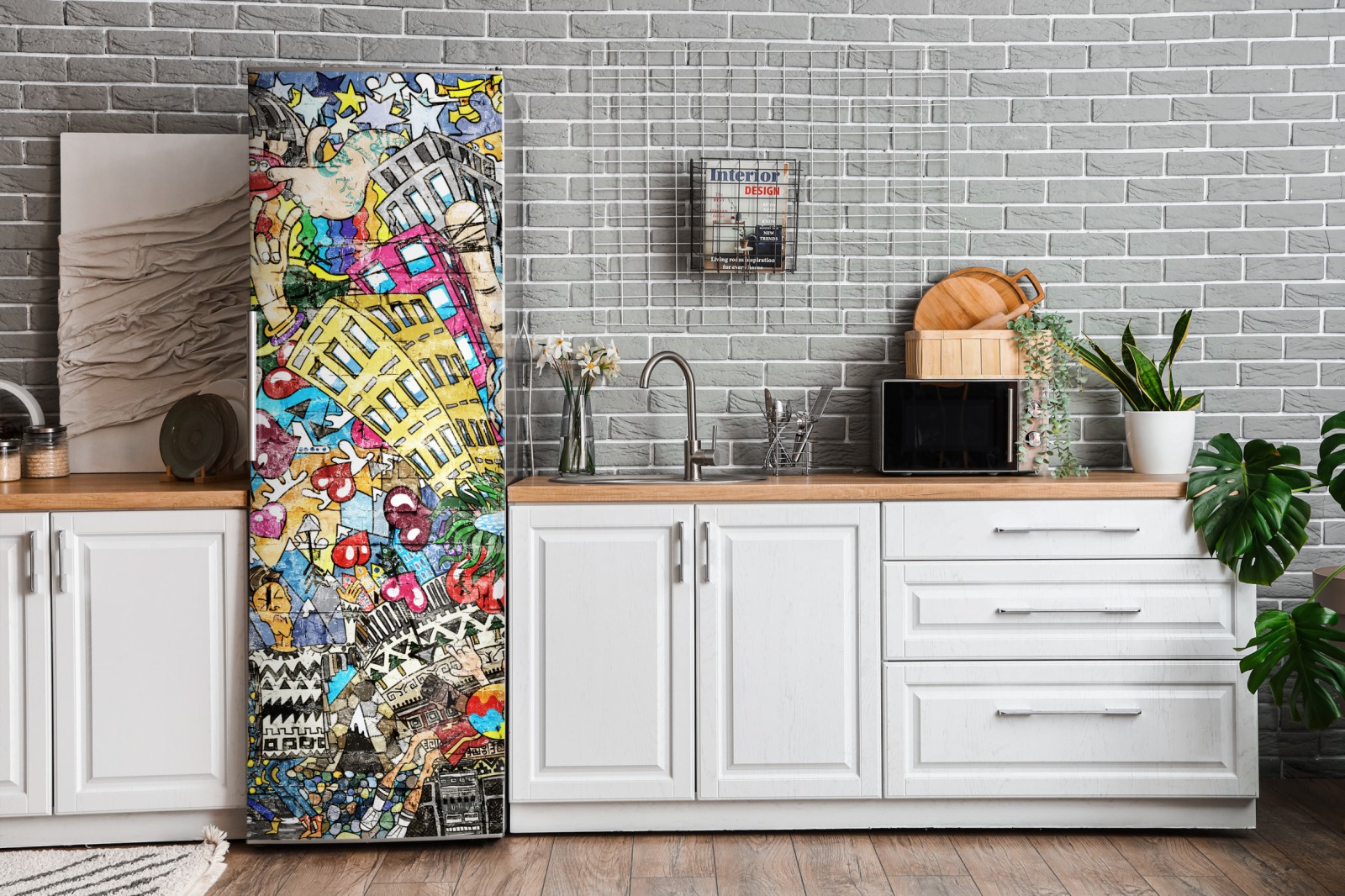 Kühlschrankaufkleber farbenfrohes urbanes musikmural