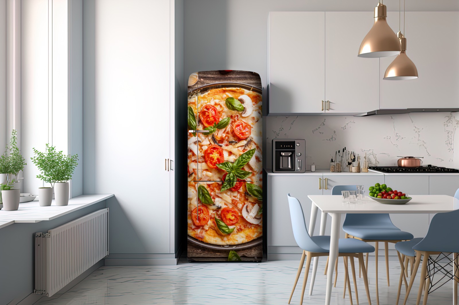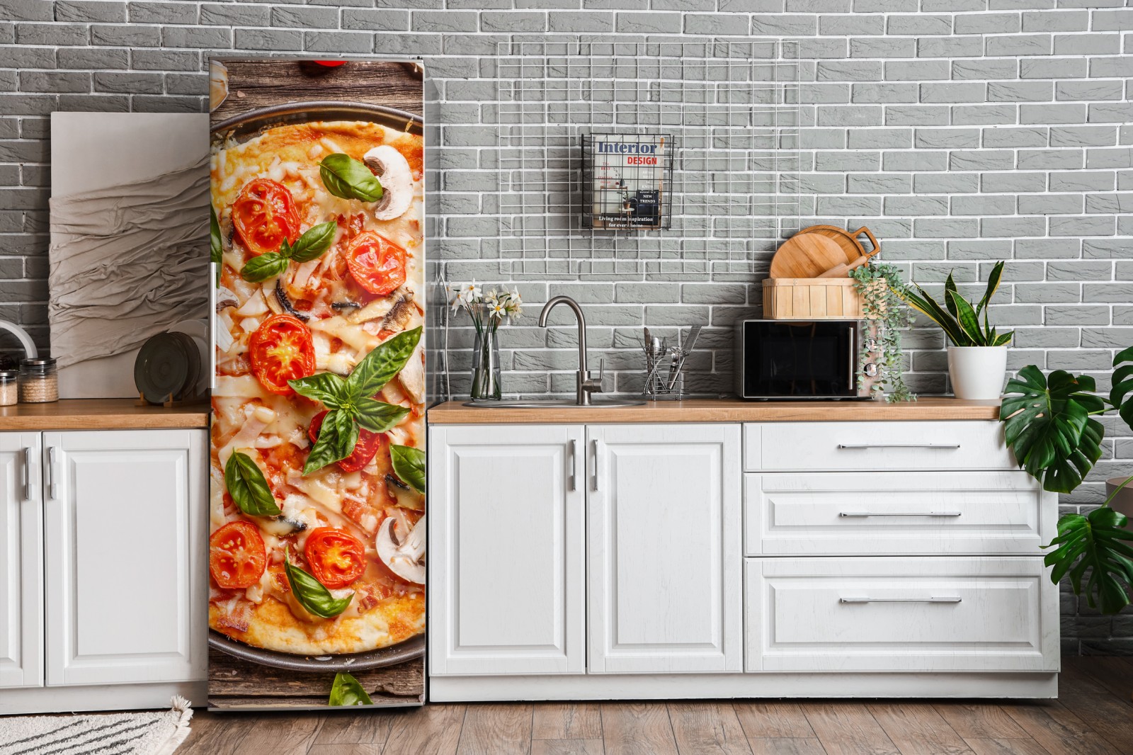 Kühlschrankaufkleber frische pizza mit basilikum und cherrytomaten