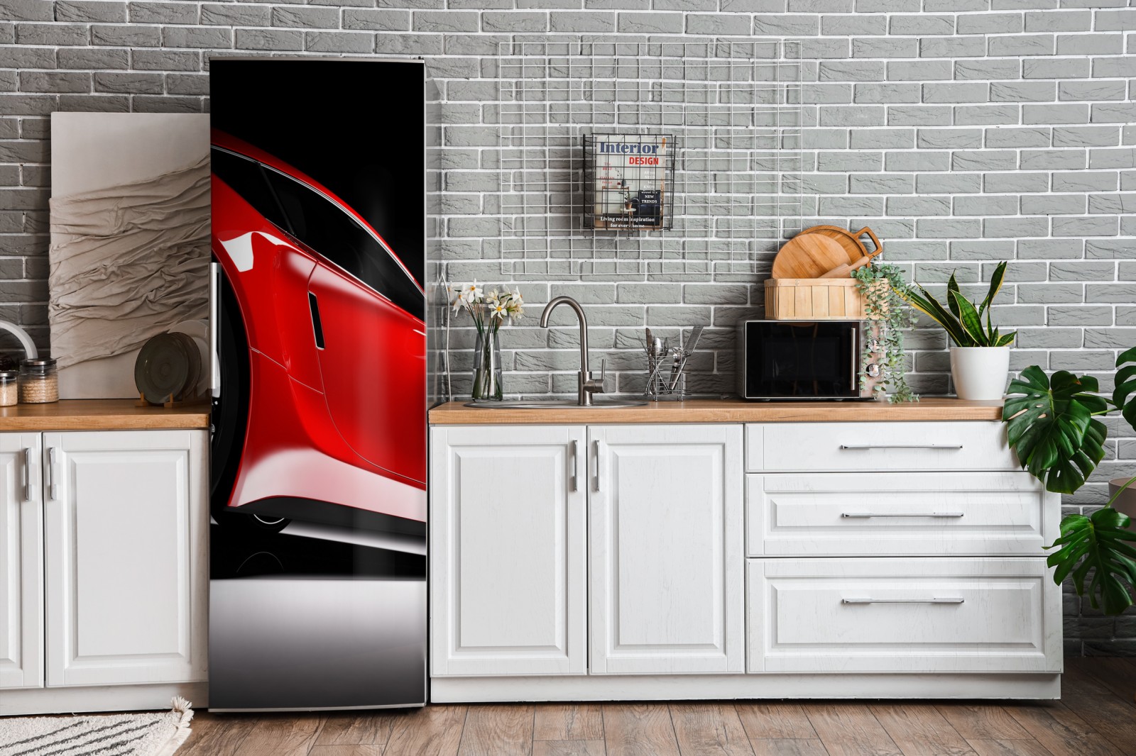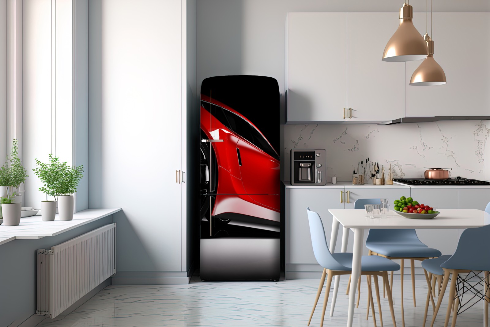 Kühlschrankaufkleber nahaufnahme eines roten sportwagens
