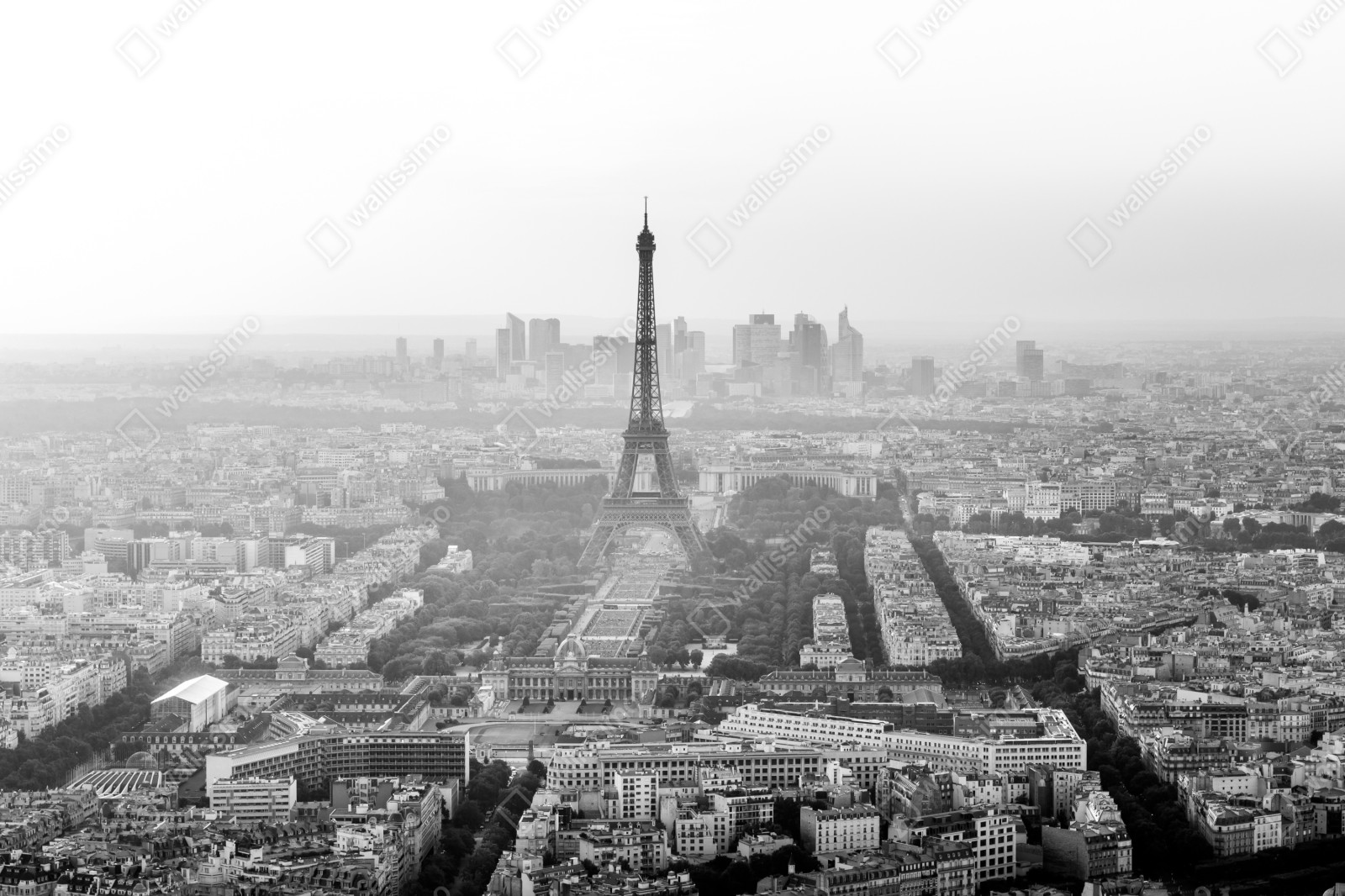 ein beeindruckendes schwarzweißes luftbild des Eiffelturms, das zeitlose pariser eleganz an jede wand bringt.
