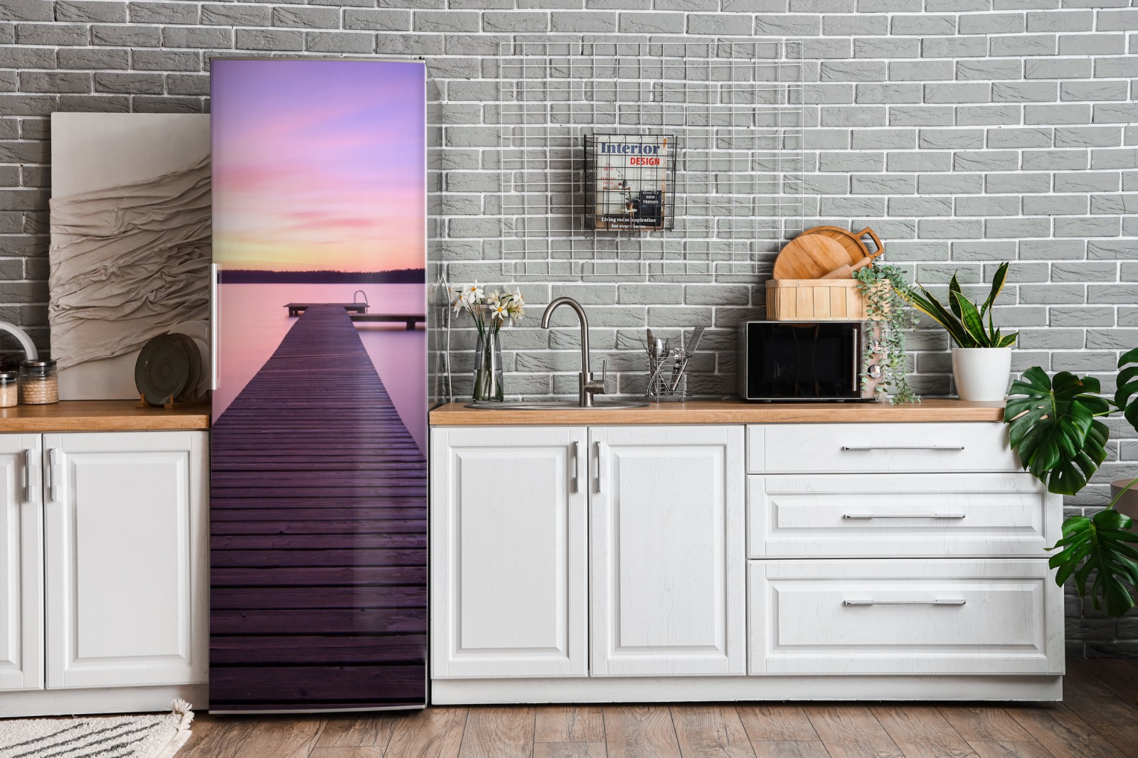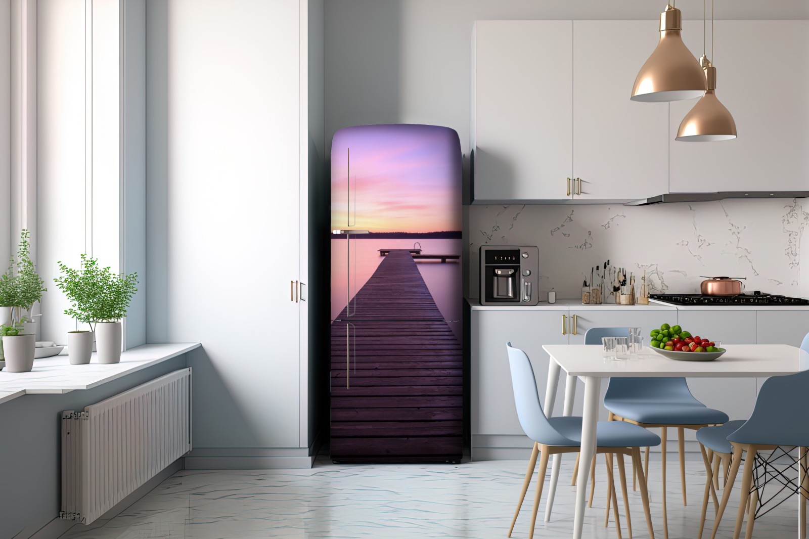 Kühlschrankaufkleber ruhiger pastellsonnenuntergang am see mit steg