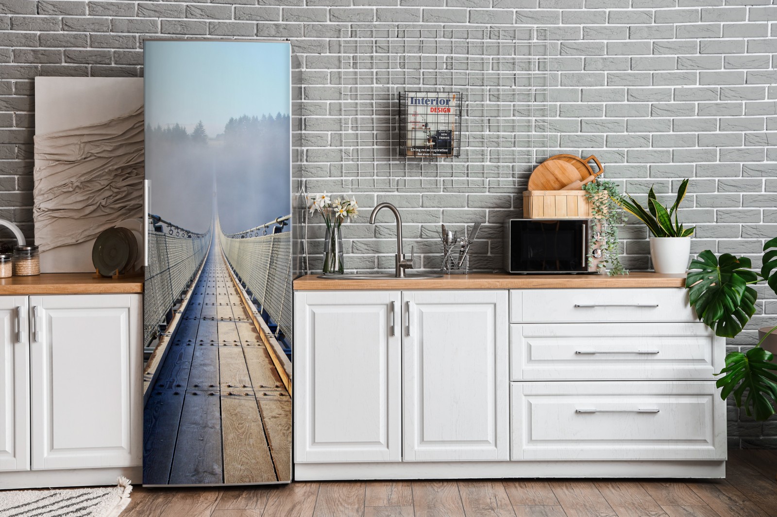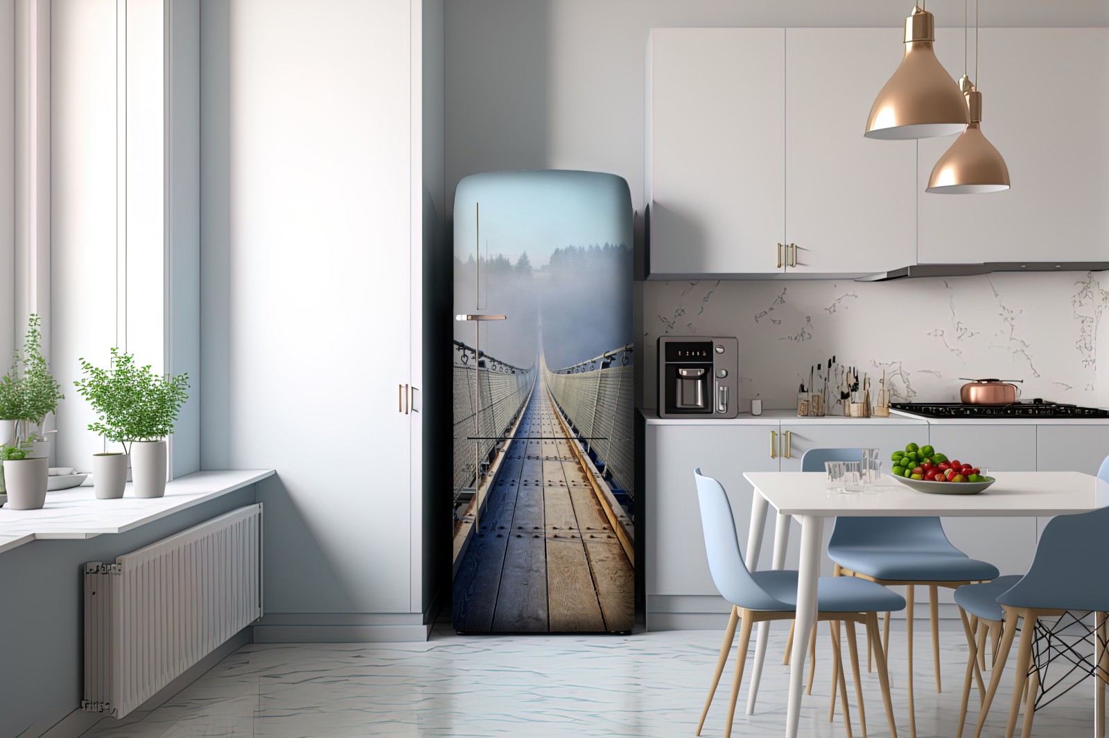 Kühlschrankaufkleber neblige hängebrücke, die in den wald führt