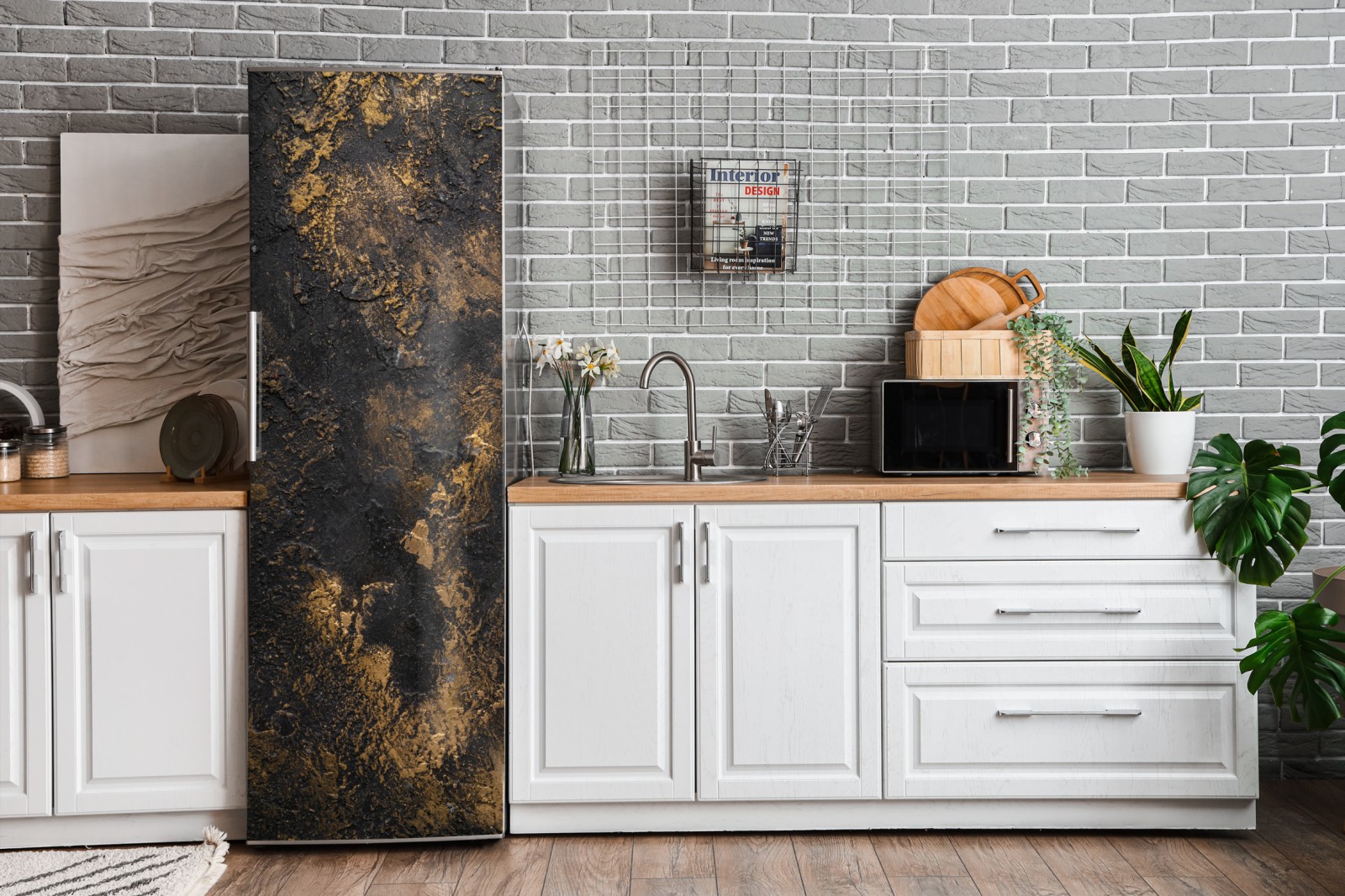 Kühlschrankaufkleber schwarz-goldene strukturierte abstraktion für wände