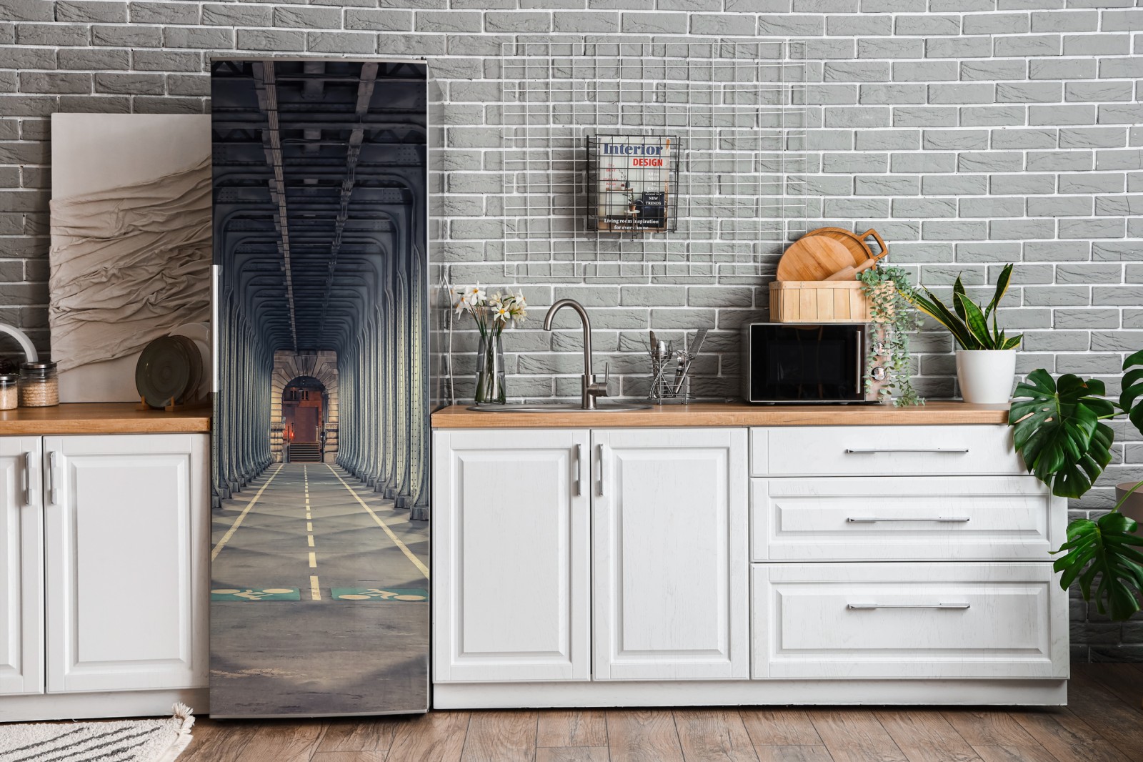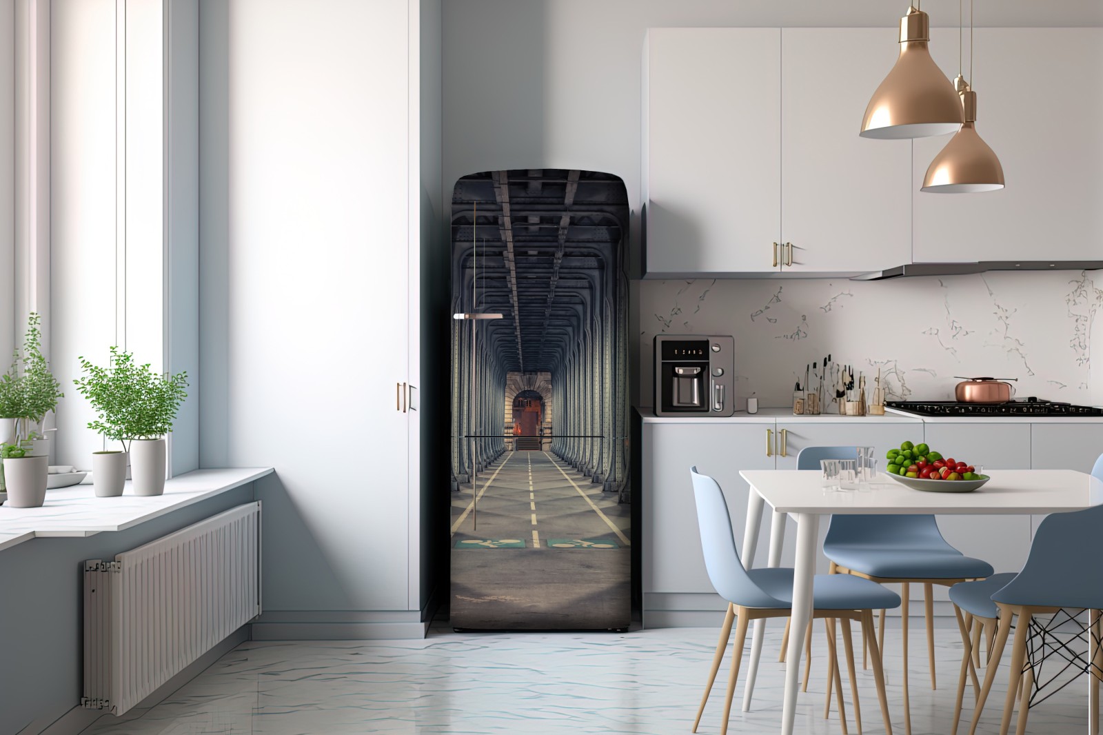 Kühlschrankaufkleber symmetrischer stahlkorridor einer brücke bei nacht