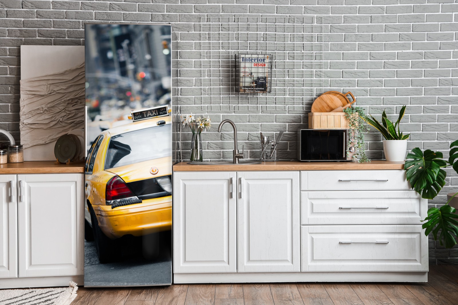 Kühlschrankaufkleber gelbe taxis in einer belebten straße von New York
