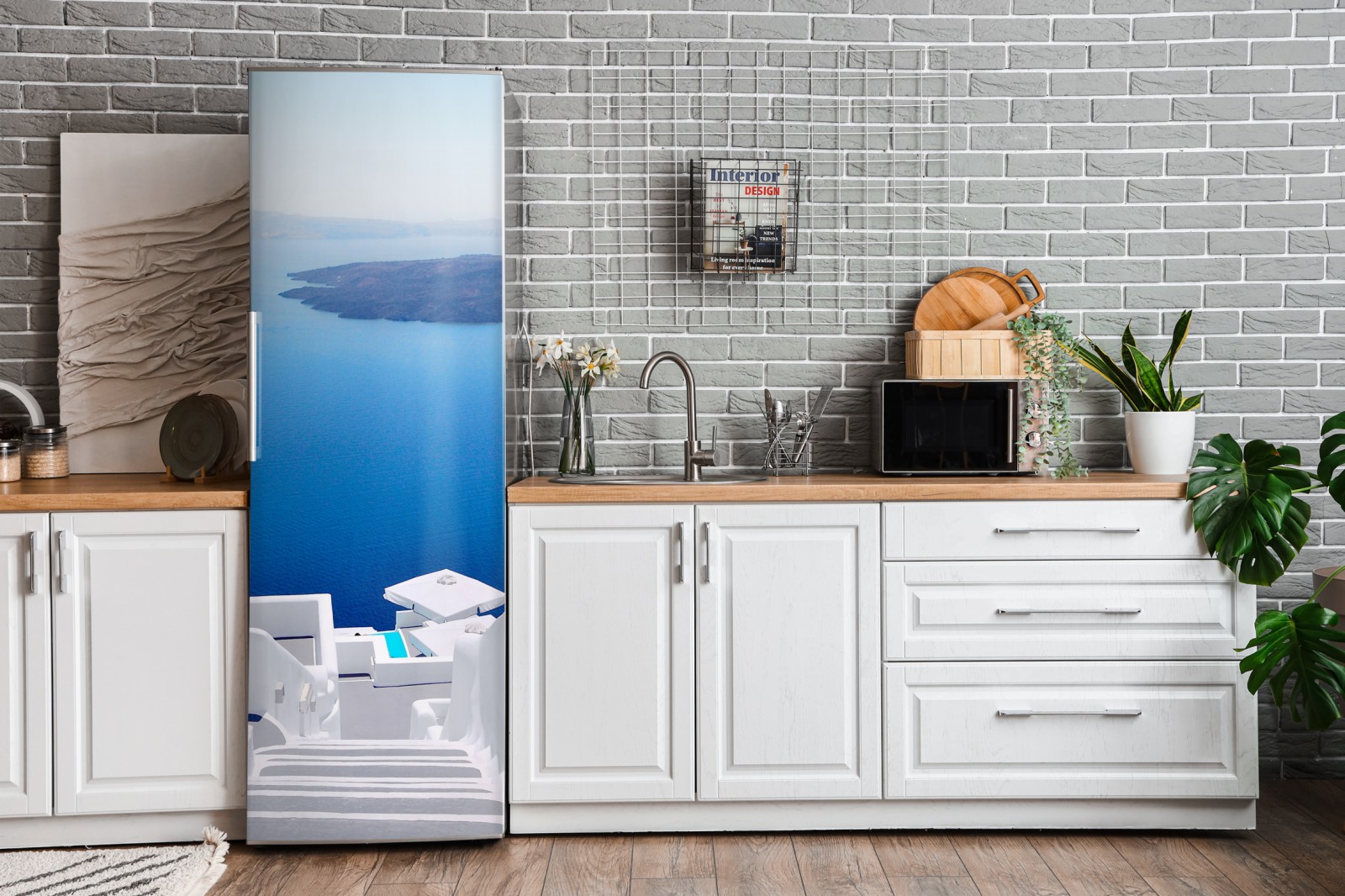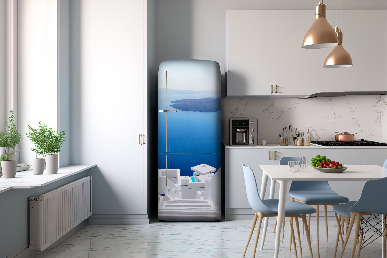 Kühlschrankaufkleber Santorini weiße treppen zum meer