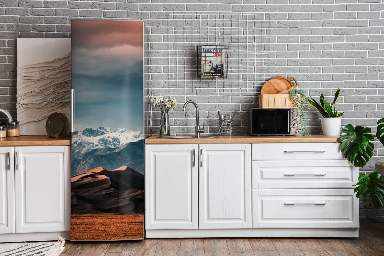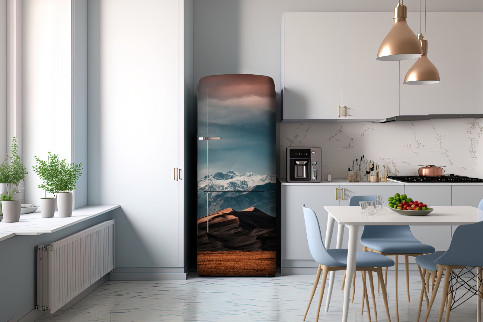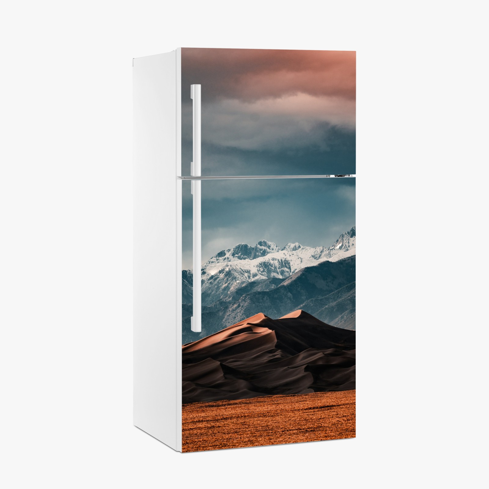 Kühlschrankaufkleber wüstendünen vor schneebedeckten gipfeln